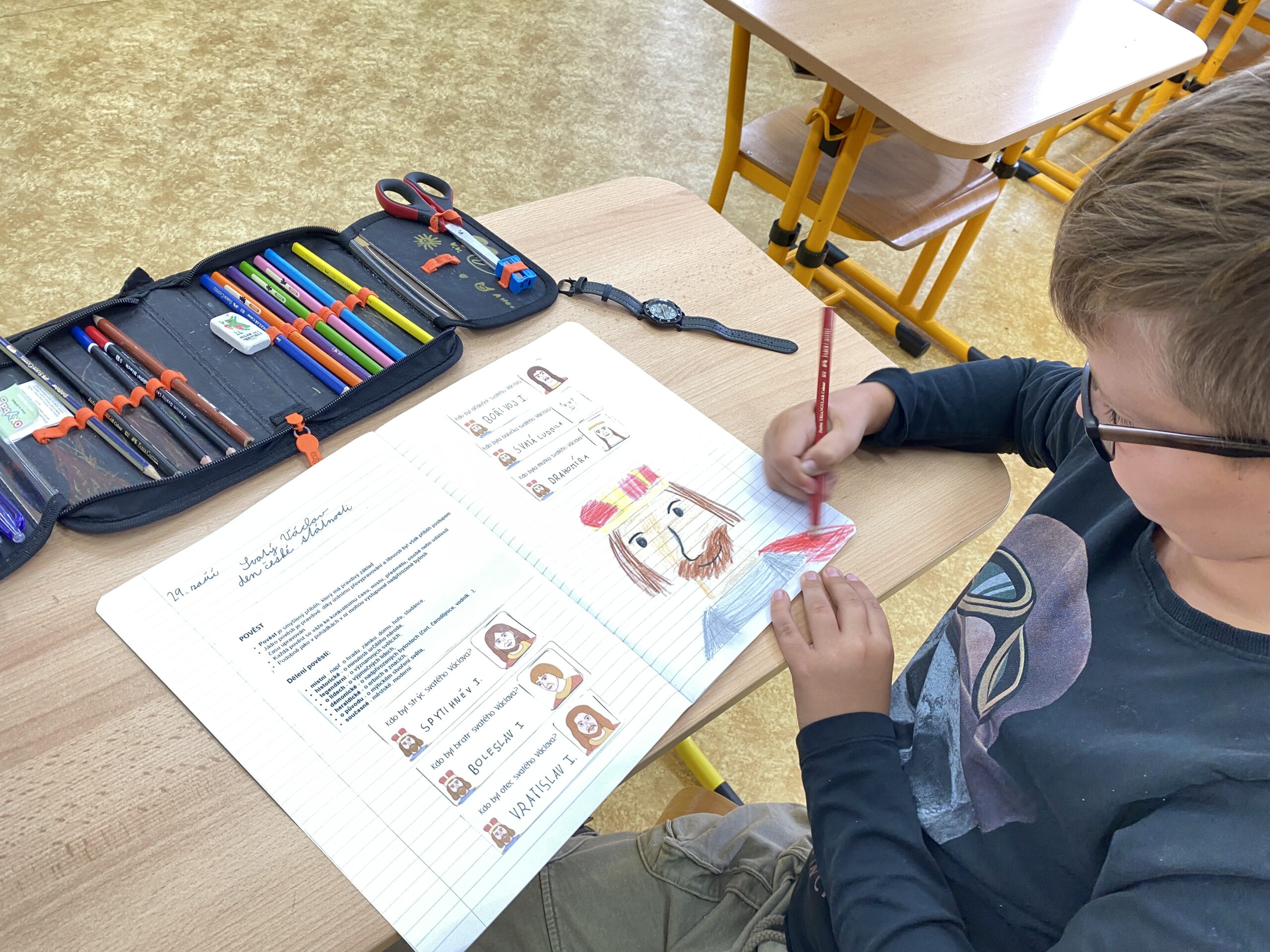 Nový týden jsme ve všech ročnících kromě 4. třídy zahájili připomínkou 28. září, na které připadá Den české státnosti. Žáci se dozvěděli, proč je tento den významný a s kým je spojen. Povídali jsme si o životě sv. Václava, který se stal patronem české země a symbolem českého národa. žáci tvořili, luštili křížovky a rébusy, hledali indicie a důležité informace o tomto panovníkovi, a nechybělo ani výtvarné tvoření.