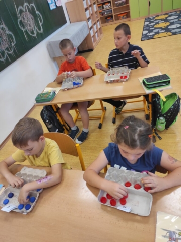 A máme za sebou první měsíc ve škole 🙂 Zvykli jsme si na školní režim, kamarády i paní učitelky. Zvládli jsme porovnávání do pěti, pravolevou orientaci i orientaci v prostoru a jsme velmi šikovní na pracovní a výtvarnou výchovu. A než začneme číst první slabiky, musíme ještě pořádně cvičit ouška. Snad budeme brzy profíci i v této činnosti! Už se těšíme, co nám přinese měsíc říjen 🙂