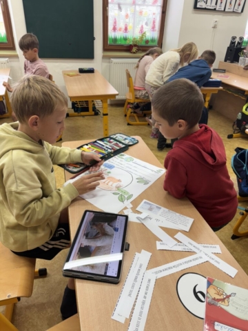 4. října si po celém světě připomínáme Mezinárodní den zvířat. Naši žáci se tomuto tématu věnovali v několika hodinách prostřednictvím různých aktivit a projektů. V 1. ročníku si přečetli příběh O poslední vlaštovce, který pak dle osnovy skládali a pomocí velkých vlaštovek uvolňovali ruce. Ve 2. a 3. ročníku se dozvěděli spoustu zajímavostí o osmi ohrožených druzích zvířat, proč jsou ohrožené a jak jim můžeme chránit. Naši nejstarší žáci zvířata namalovali a jejich práce byly velmi zdařilé.