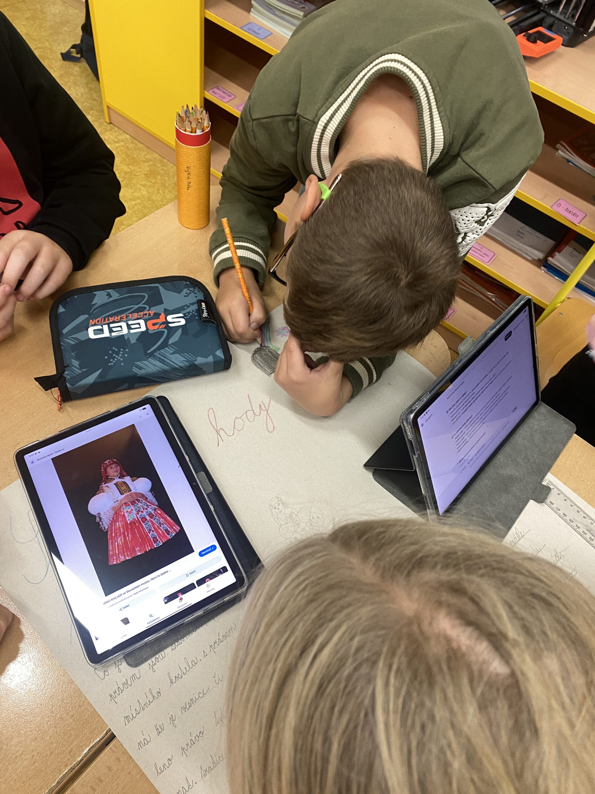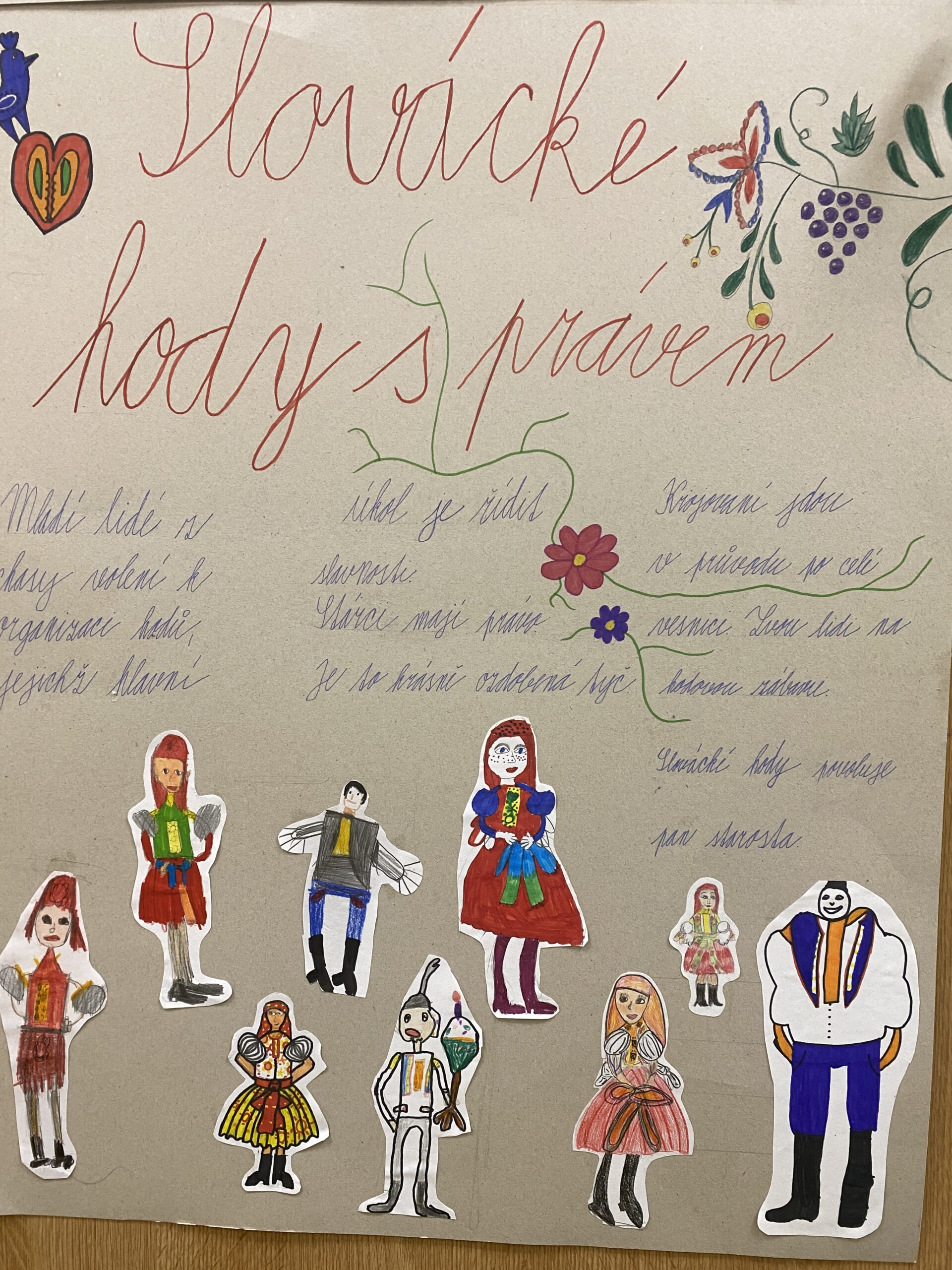 Žáci ve čtvrtém a pátém ročníku se v malém projektu věnovali problematice hodů. Je to v říjnu v Mistřicích aktuální téma. Všichni se zapojili do zjišťování významu slova hody, právo, chasa, stárci, s vervou se pustili do kreslení kroje a na závěr vyhodnotili, že nejlepší z hodů jsou kolotoče na návsi :).