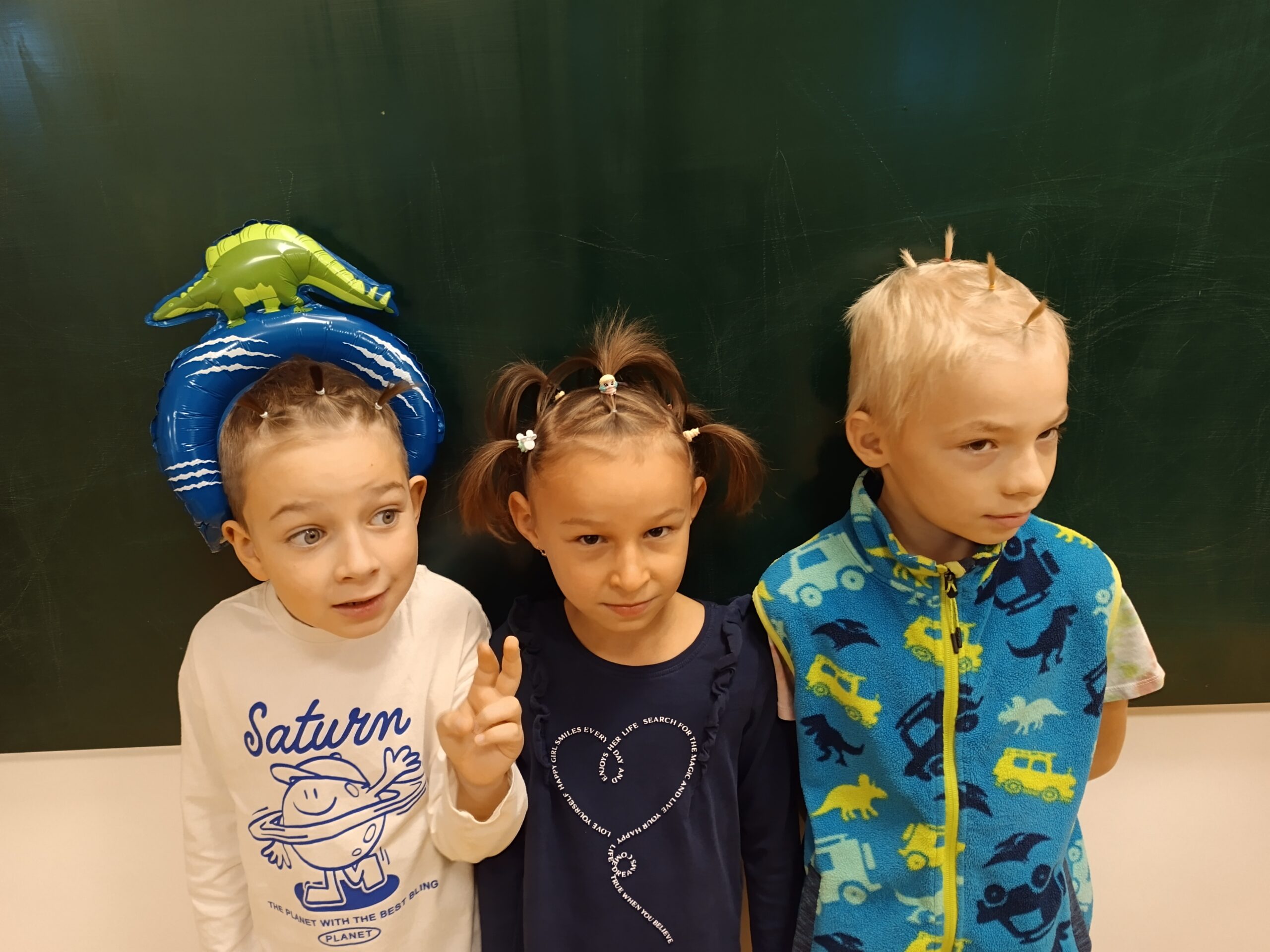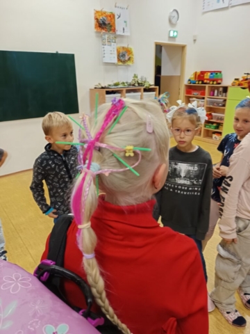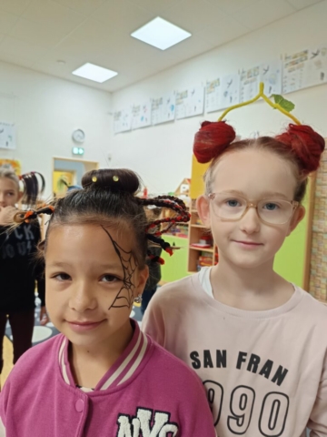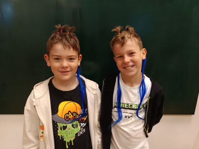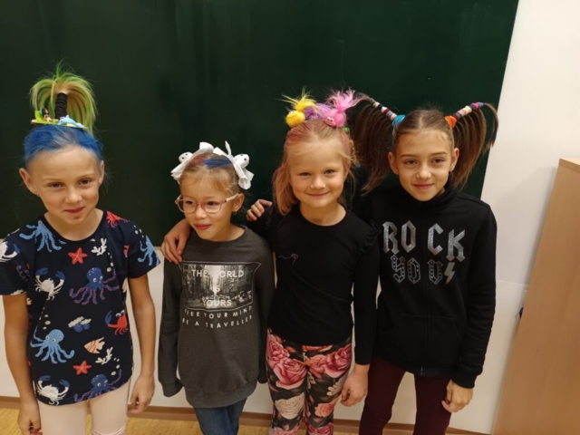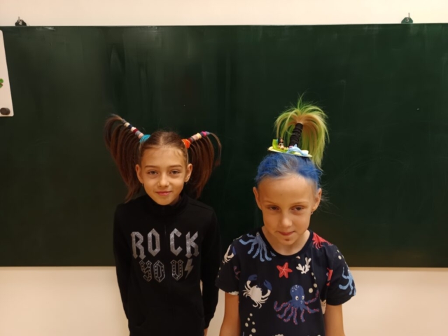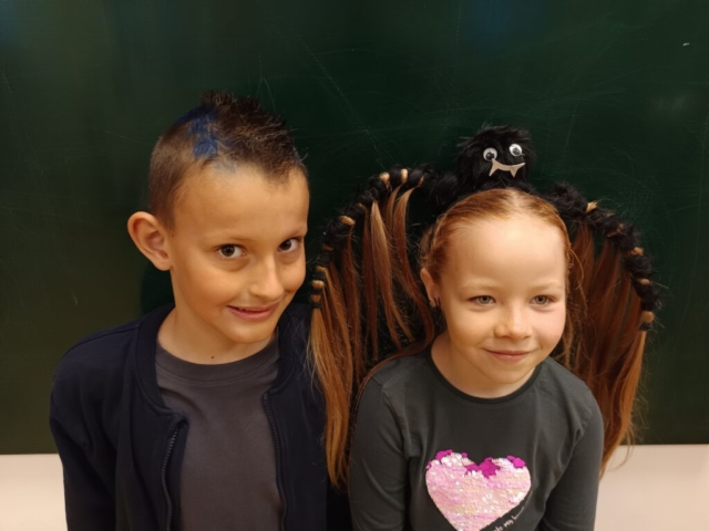 Na naší škole jsme si včera užili Den bláznivých účesů! Děti i zaměstnanci školy přišli s nejrůznějšími nápaditými a veselými účesy – nechyběly copánky všech barev, paruky, mašle, létající vlasy, pláž a mnoho dalších útvarů na hlavičkách s pořádnou dávkou fantazie. Do akce se s úsměvem zapojila i školní jídelna, kde panoval stejně bláznivý duch.