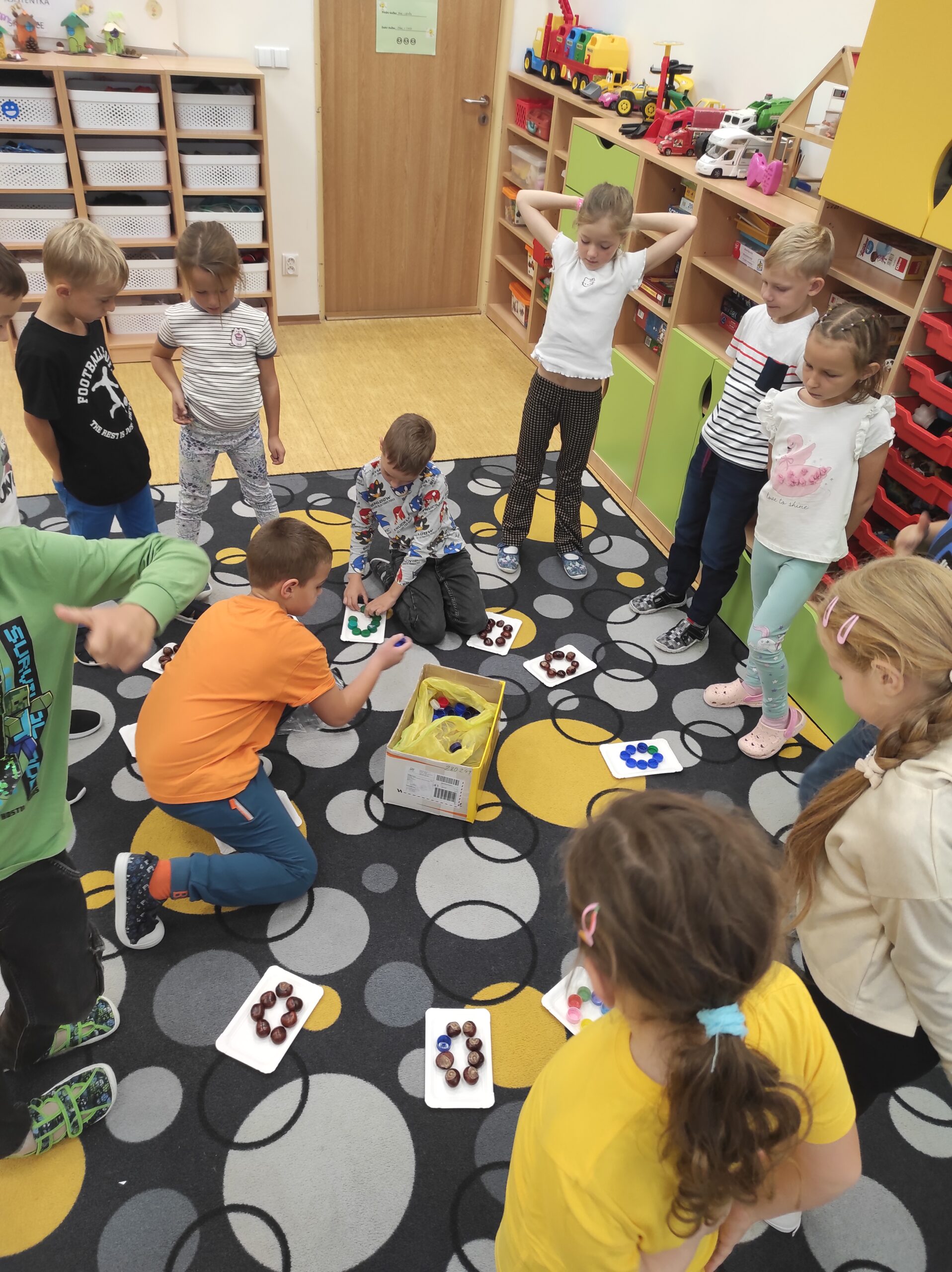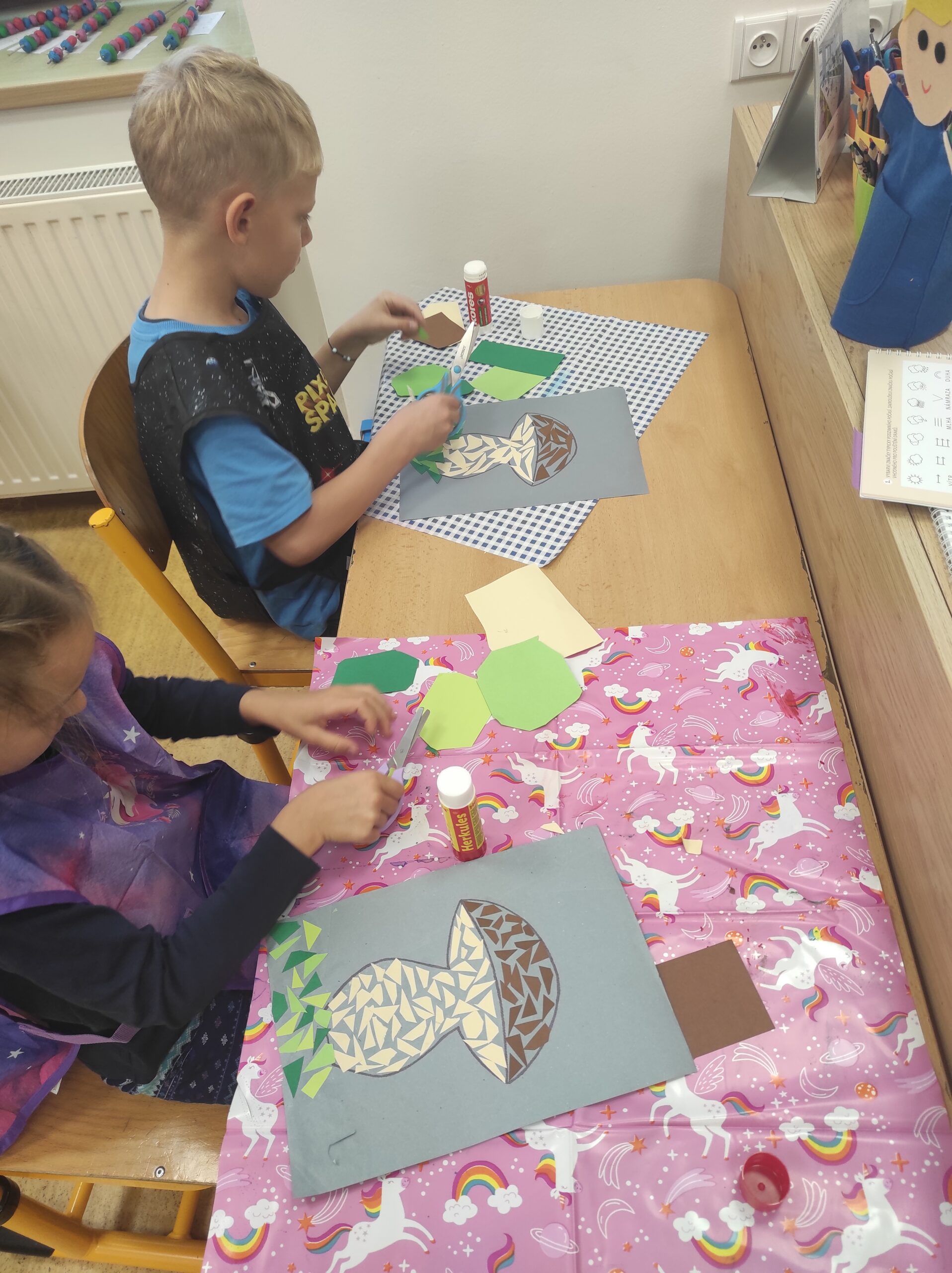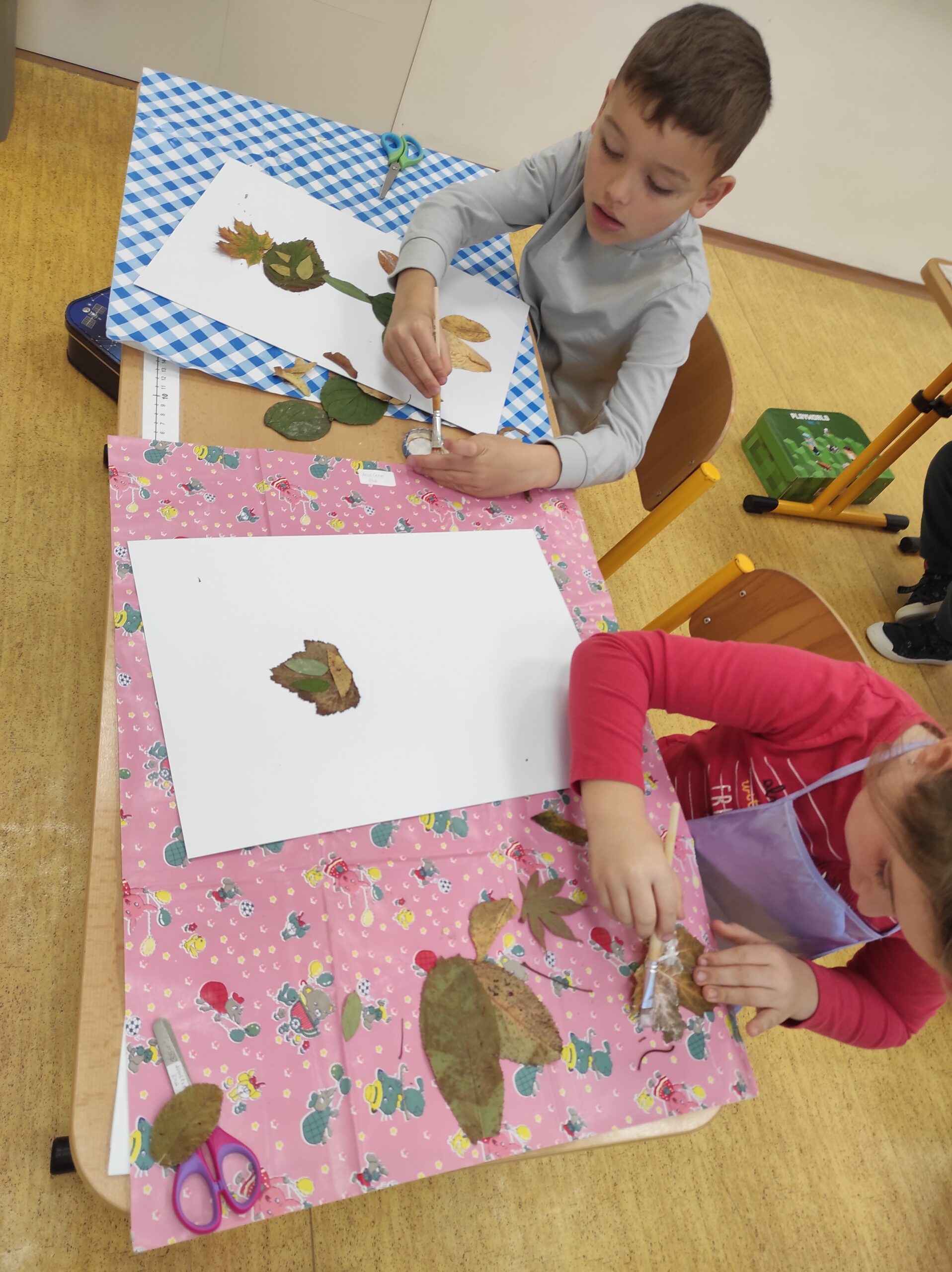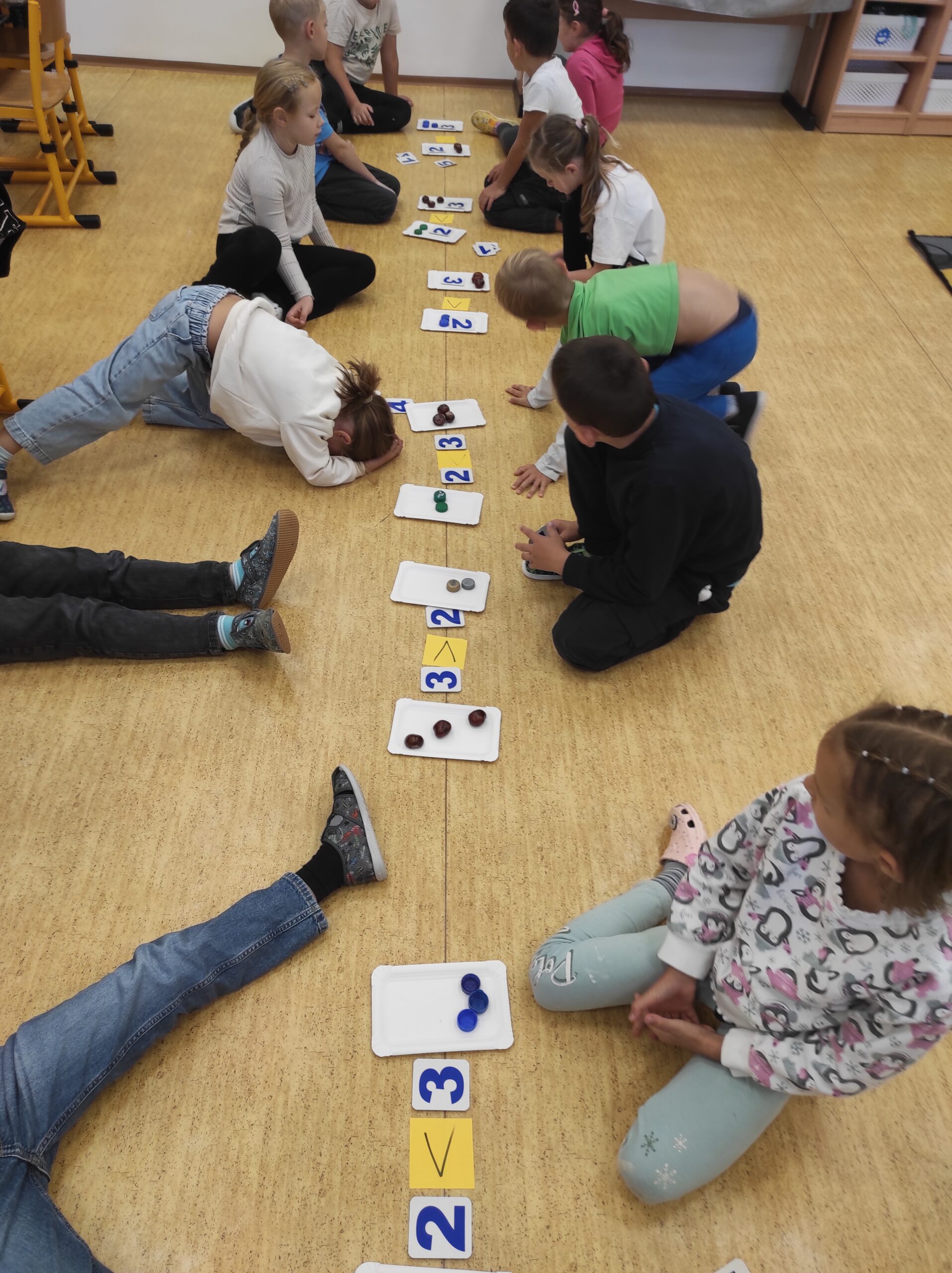 Pro zpestření výuky jsme si ve třídě připravili sběr přírodnin – listí, větvičky, šišky a plody. Děti si s nimi mohly hrát, skládat je do různých tvarů nebo je využít při tvorbě vlastních uměleckých děl. Velkým úspěchem byla modelace stromů z plastelíny. Podle diktátu jsme si vytvořili model stromu. Tato aktivita jim pomohla lépe pochopit strukturu a tvar stromů a zároveň rozvíjela jejich jemnou motoriku, prostorovou představivost a pravolevou orientaci. Tyto dovednosti jsme ještě rozvíjeli při hře šipkovaná a skládání obrázků z geometrických tvarů.