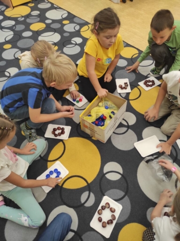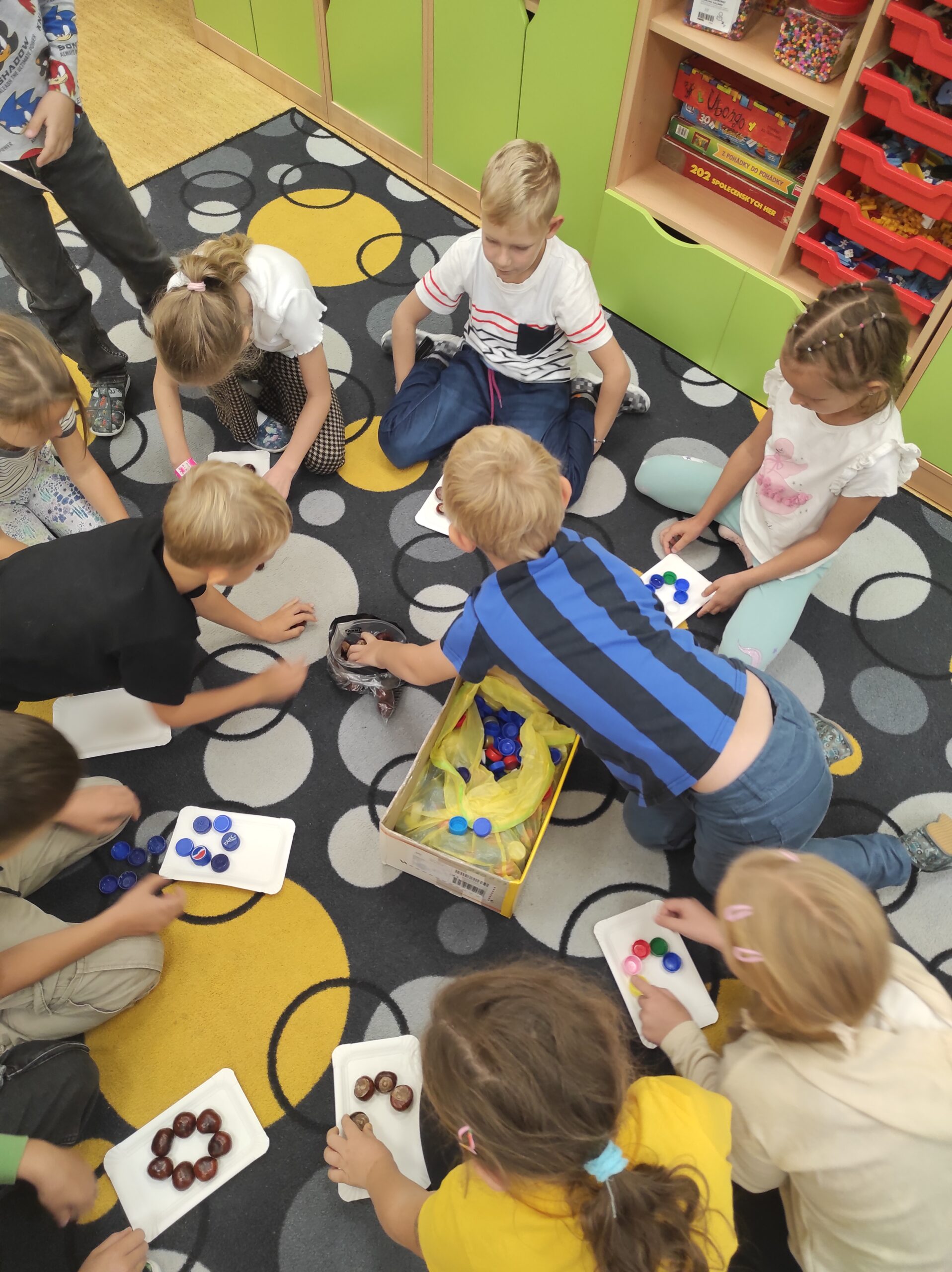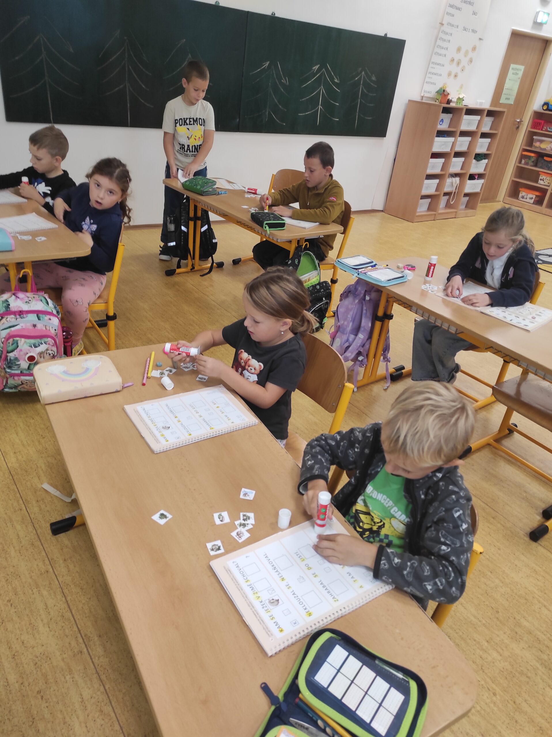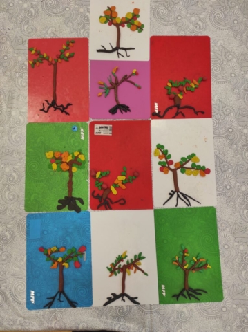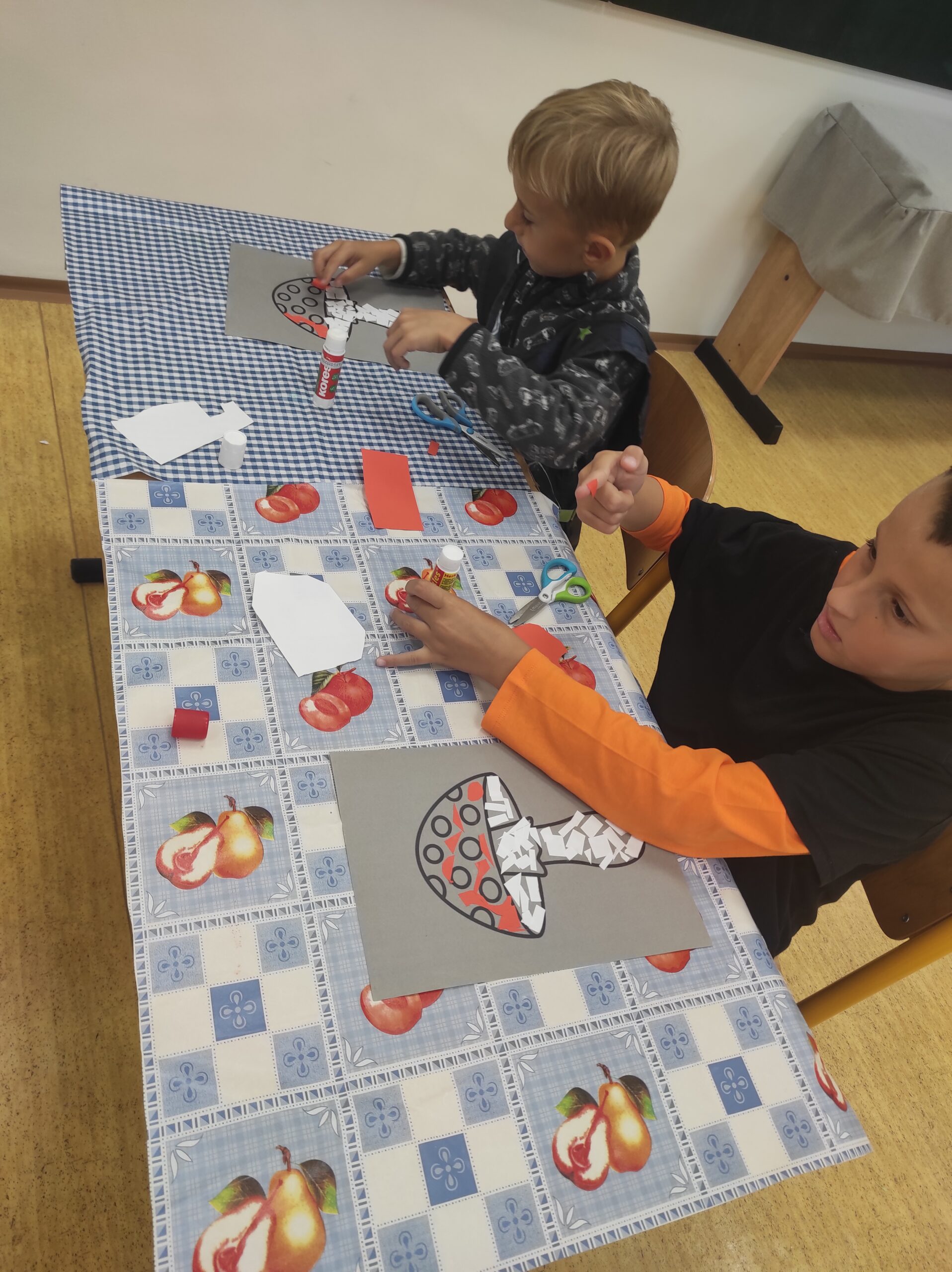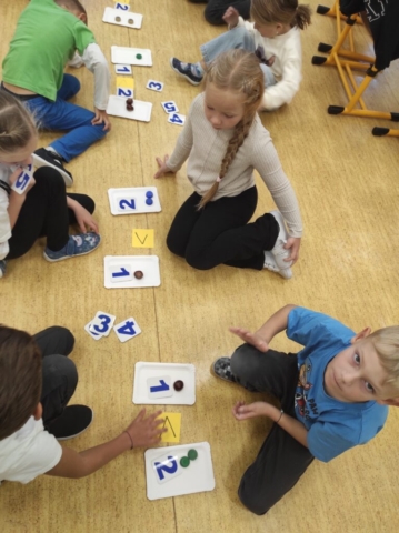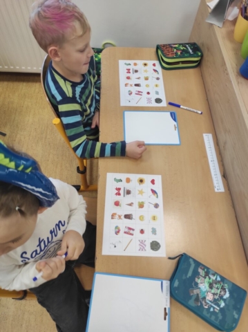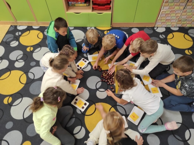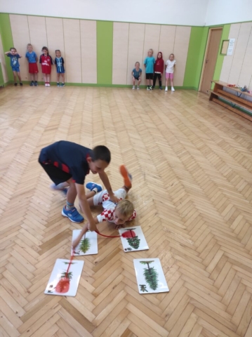 Pro zpestření výuky jsme si ve třídě připravili sběr přírodnin – listí, větvičky, šišky a plody. Děti si s nimi mohly hrát, skládat je do různých tvarů nebo je využít při tvorbě vlastních uměleckých děl. Velkým úspěchem byla modelace stromů z plastelíny. Podle diktátu jsme si vytvořili model stromu. Tato aktivita jim pomohla lépe pochopit strukturu a tvar stromů a zároveň rozvíjela jejich jemnou motoriku, prostorovou představivost a pravolevou orientaci. Tyto dovednosti jsme ještě rozvíjeli při hře šipkovaná a skládání obrázků z geometrických tvarů.