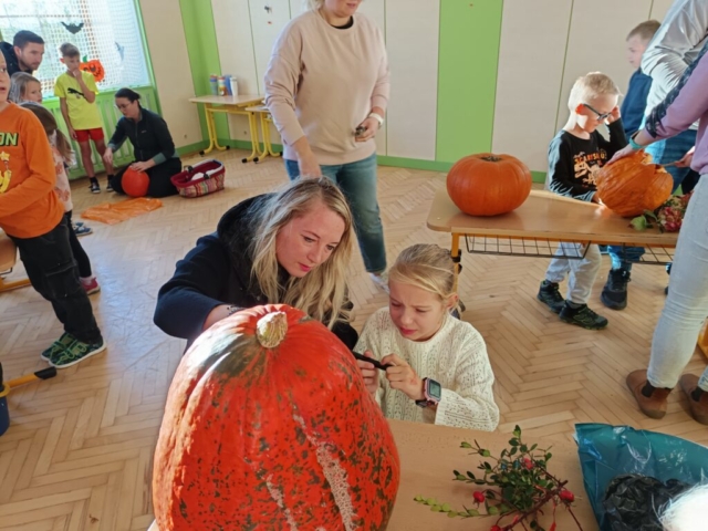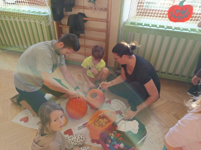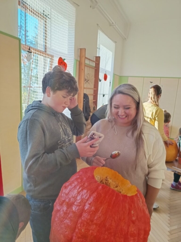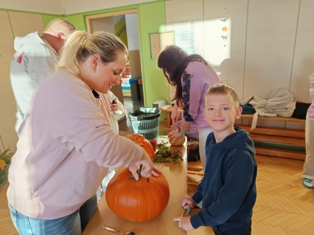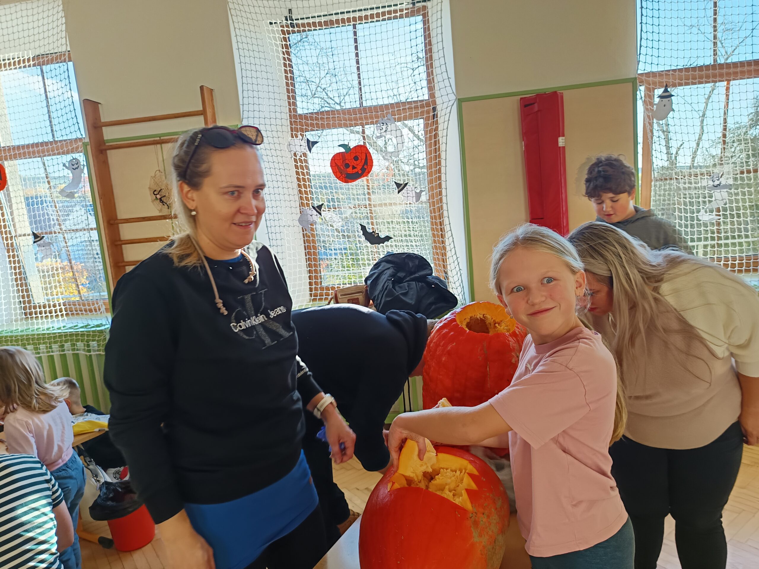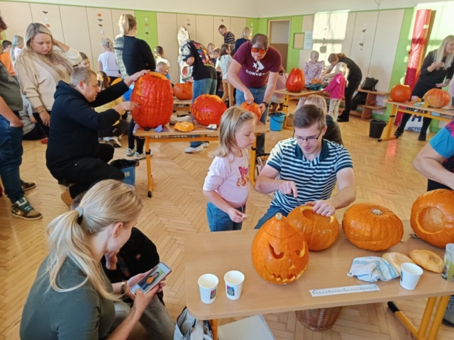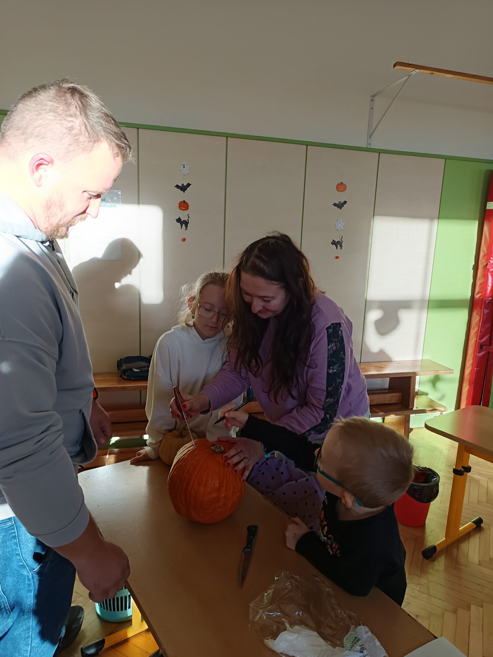 V naší školní družině proběhla oblíbená podzimní akce Veselé dýňování, která se letos opravdu vydařila! Rodiče si spolu s dětmi užili příjemné odpoledne plné tvoření, smíchu a podzimní pohody. Společně jsme dlabali dýně nejrůznějších tvarů a velikostí – vznikly strašidelné i veselé obličeje, originální výtvory i opravdová dýňová umělecká díla. Celou akci doprovázela skvělá nálada a velká účast rodičů a dětí, z čehož máme obrovskou radost.