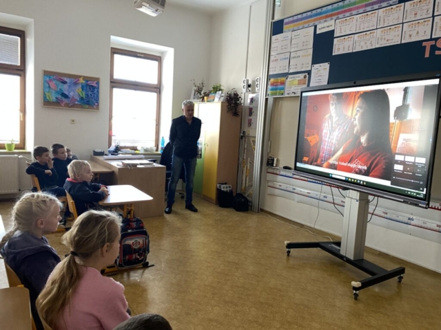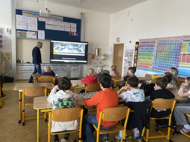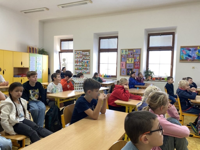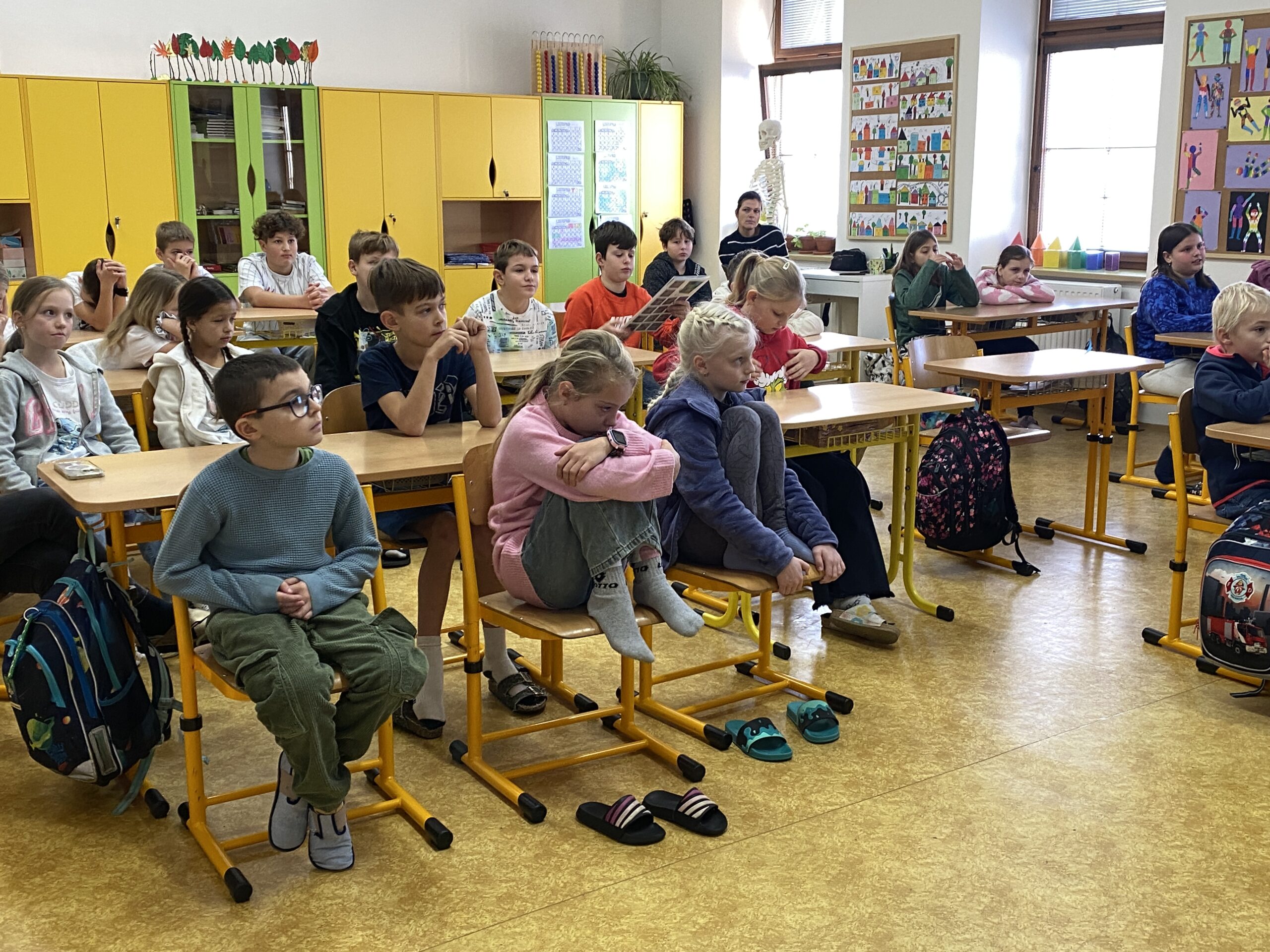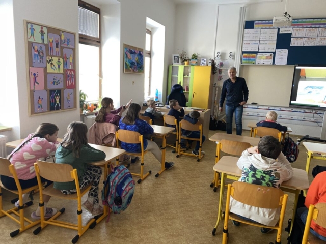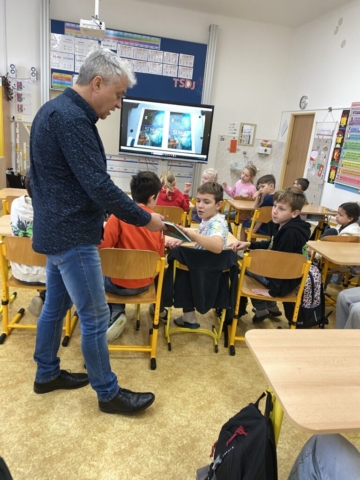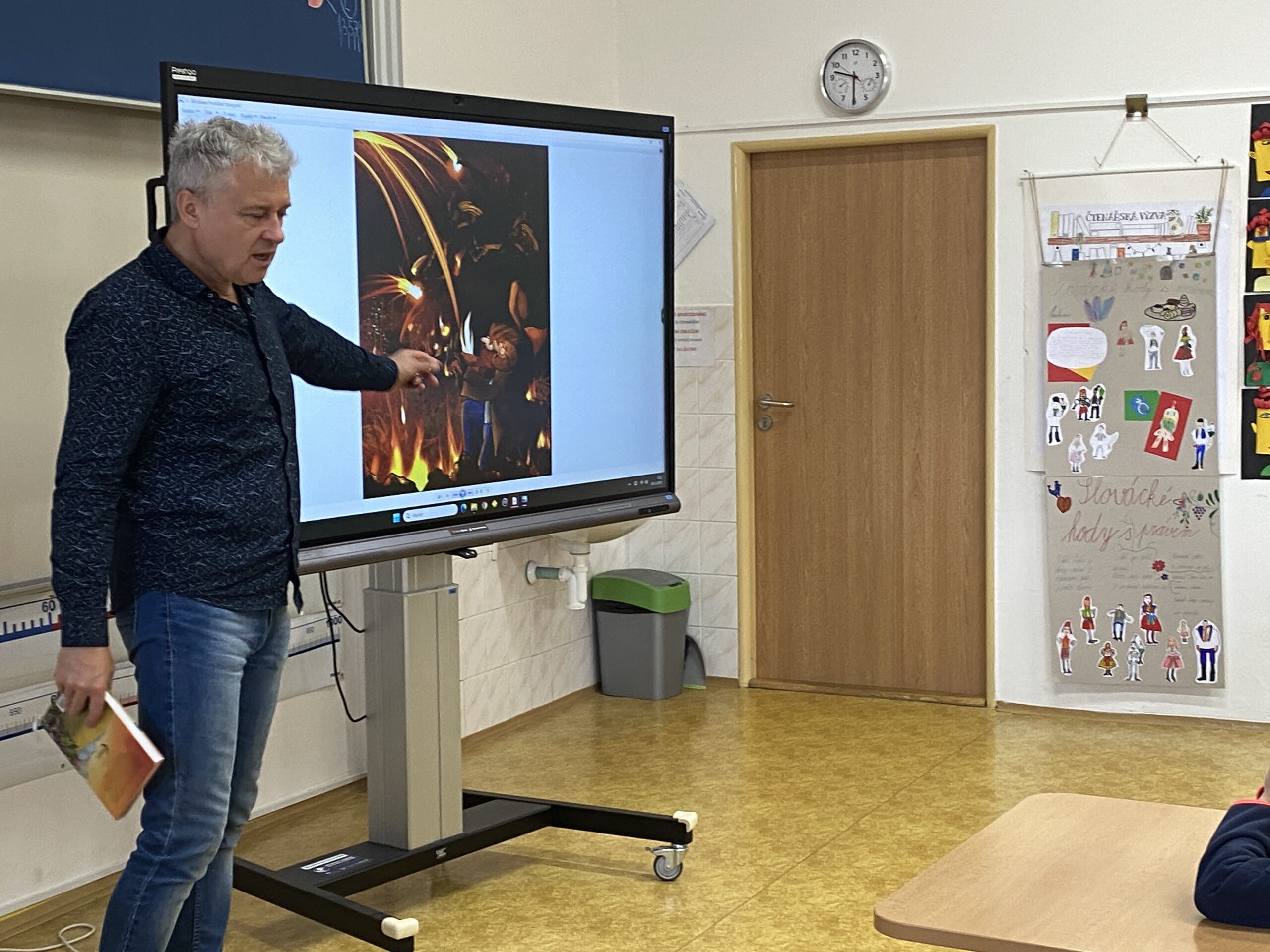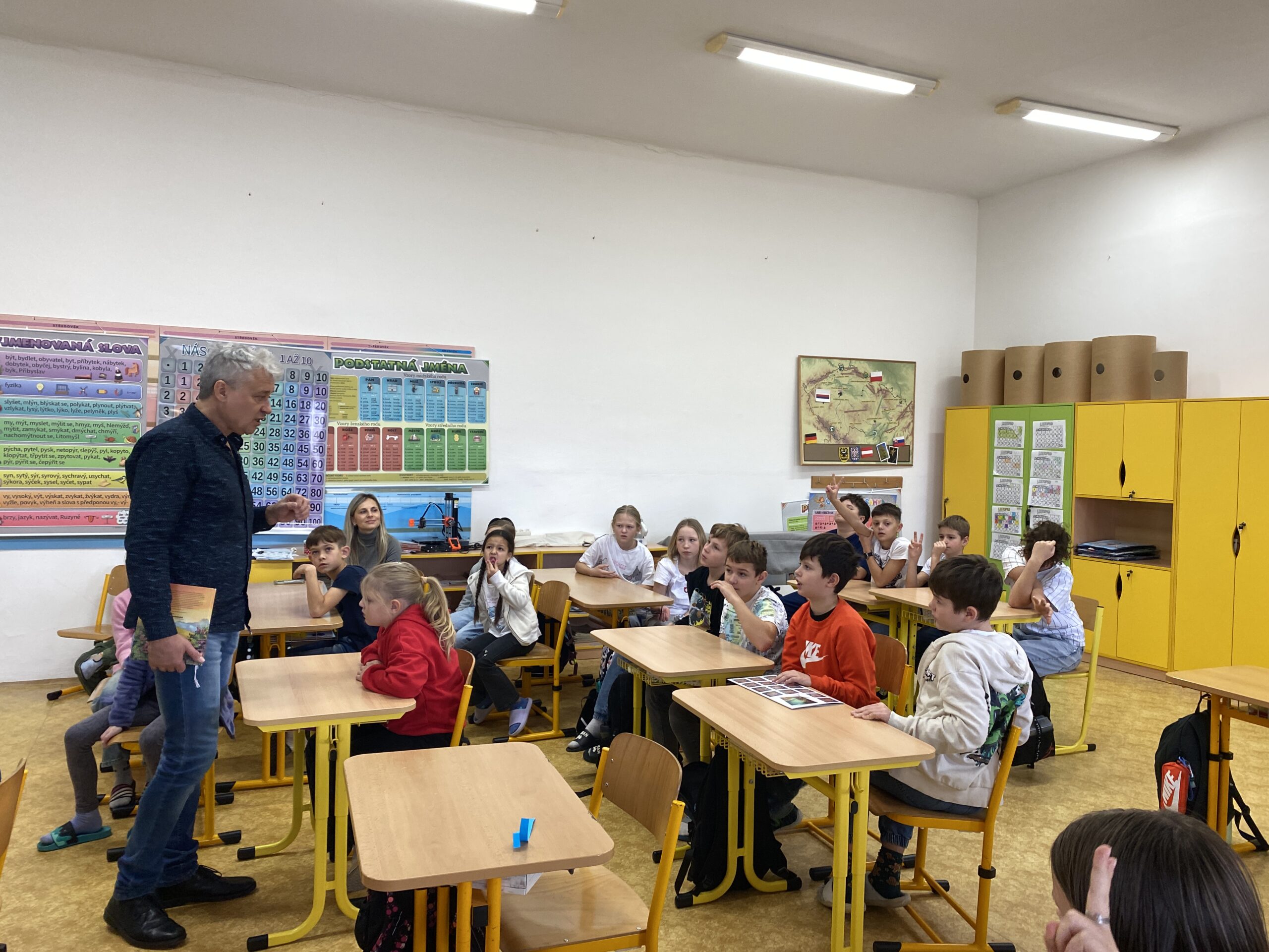 V pátek 28.11. do naší školy zavítal spisovatel Josef Beneš, který našim žákům představil svoji tvorbu. Během besedy se žáci pomocí dokumentu přenesli do tiskárny a dozvěděli se, jak taková kniha vzniká a co všechno proces výroby obnáší. Pan spisovatel žáky podrobně seznámil s výrobou knihy, ochotně odpovídal na jejich dotazy a ukázal jim, jak se tvoří ilustrace. Nechybělo autorské čtení z knihy Meďan a Koumen na planetě pupkáčů, které žákům přiblížilo její děj. Na závěr si žáci mohli zakoupit knihu i s osobním věnováním autora. Beseda byla pro žáky velmi inspirativní a obohacující.