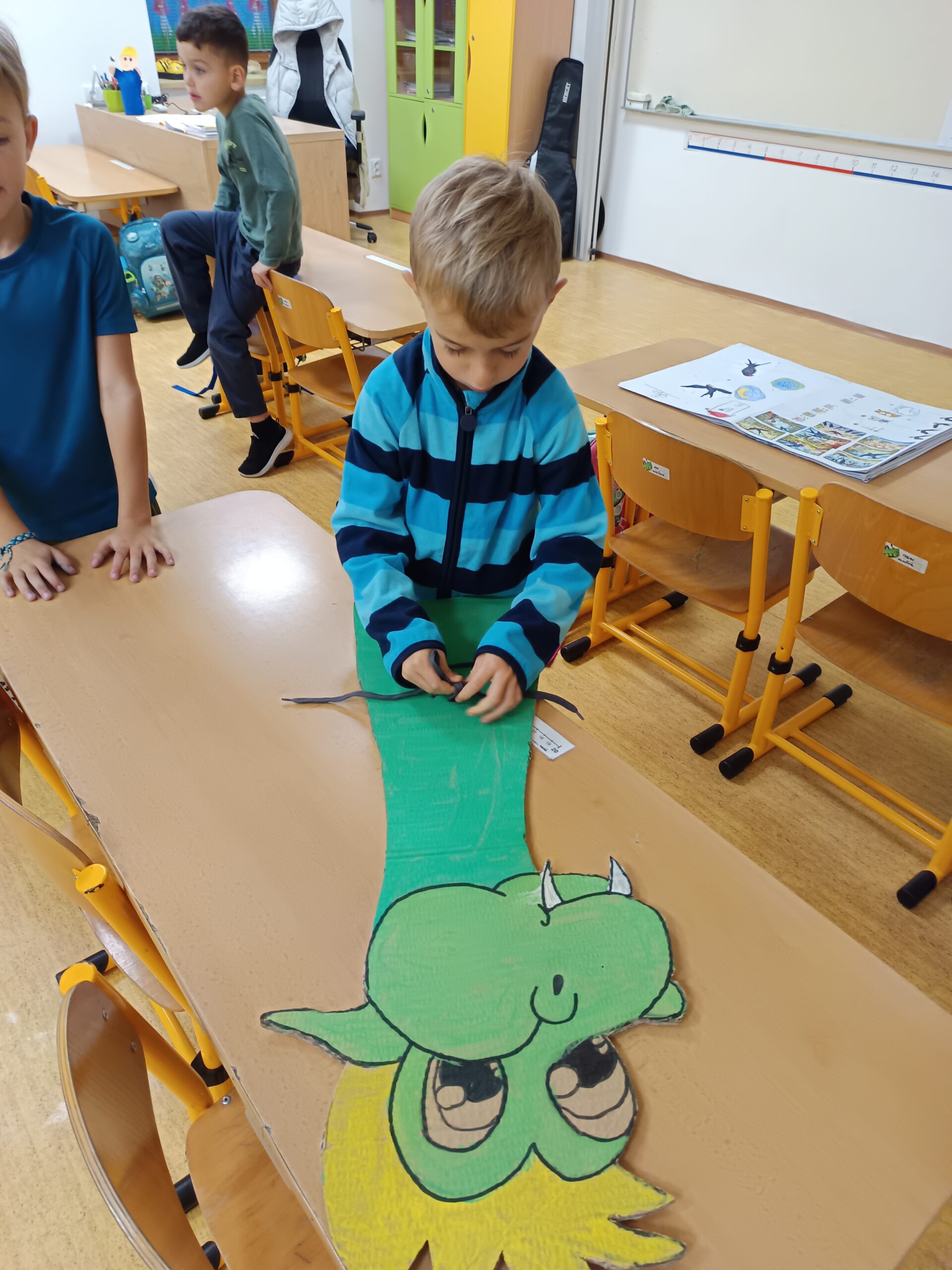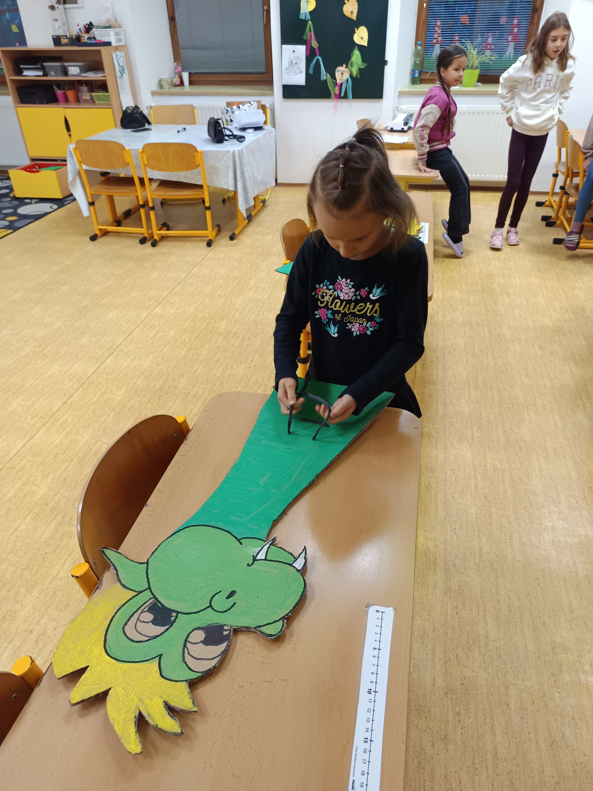 Listopad u nás ve školní družině byl velmi pestrý, děti si užily dračí skákačku a také si vyzkoušely zručnost při uvazování smyček drakům pod krk. Společně jsme tvořili i netradiční létající čtverce a zdobili podzimní listy, na které děti kreslily svými oblíbenými barvami.