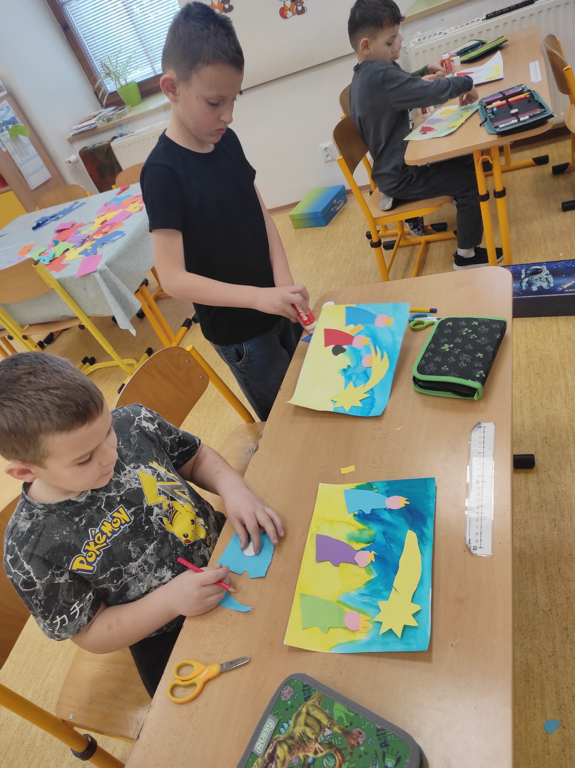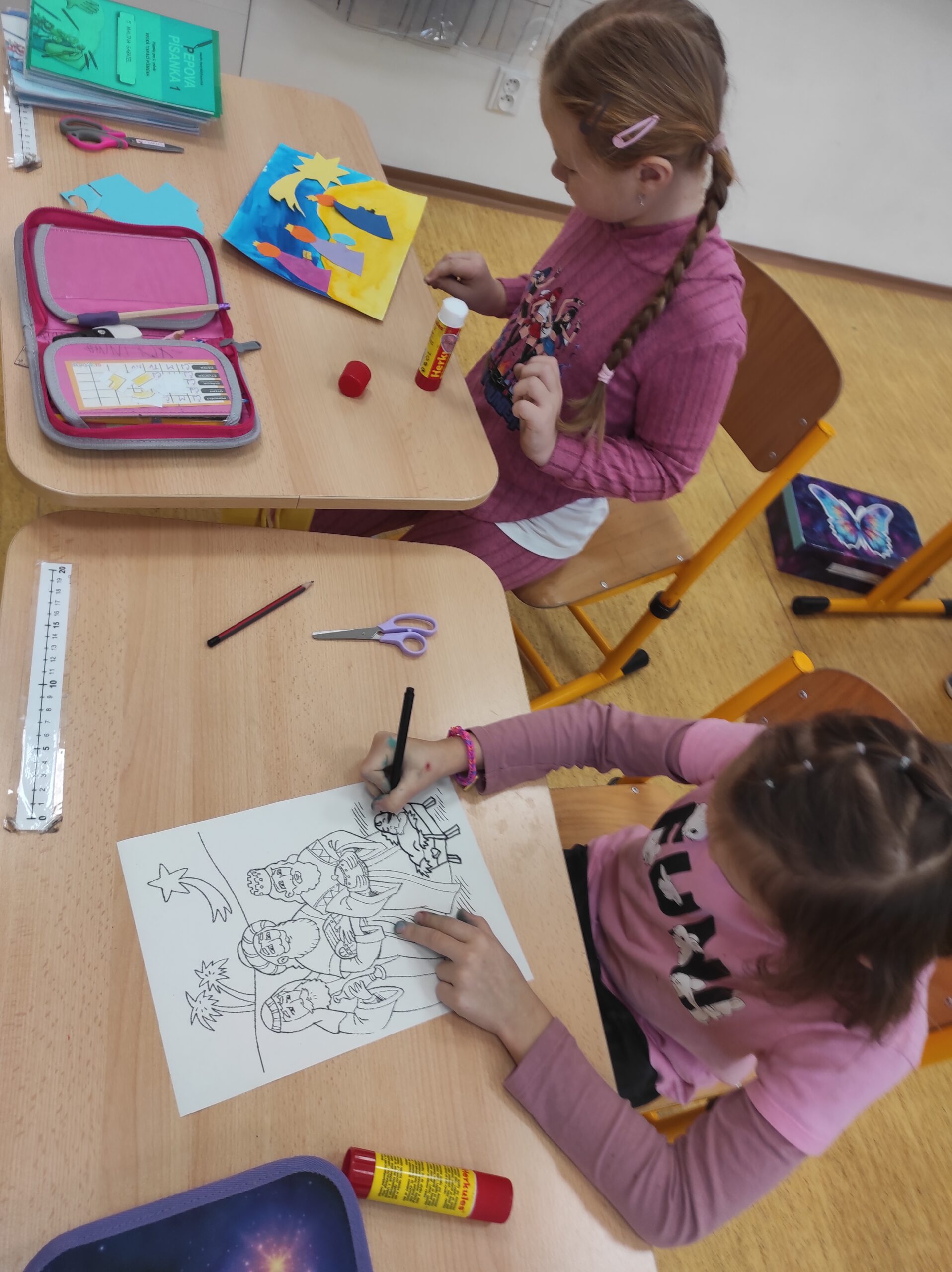 Dnes jsme pracovali na projektu Tři králové. Žáci se seznámili s vánočním příběhem a tradicemi spojenými s tímto svátkem. Vysvětlili jsme si i význam charity a Tříkrálové sbírky. Žáci si zkusili běhací diktát a plnili různé tematicky zaměřené úkoly. Společně vytvářeli obrázky a povídali si o tom, kdo jsou tři králové a co přinášejí s sebou a jaká symbolika se ukrývá v jejich jménech.