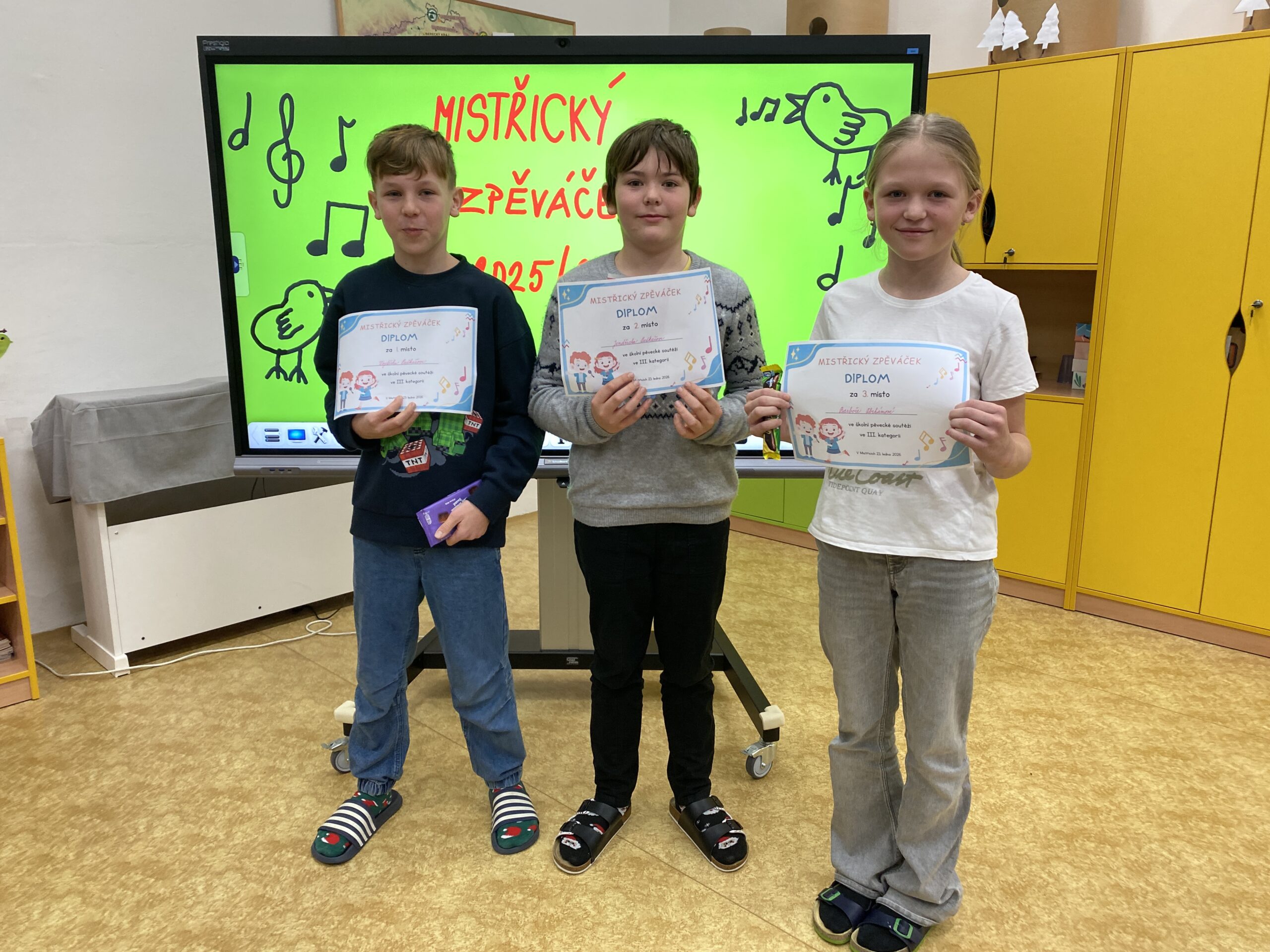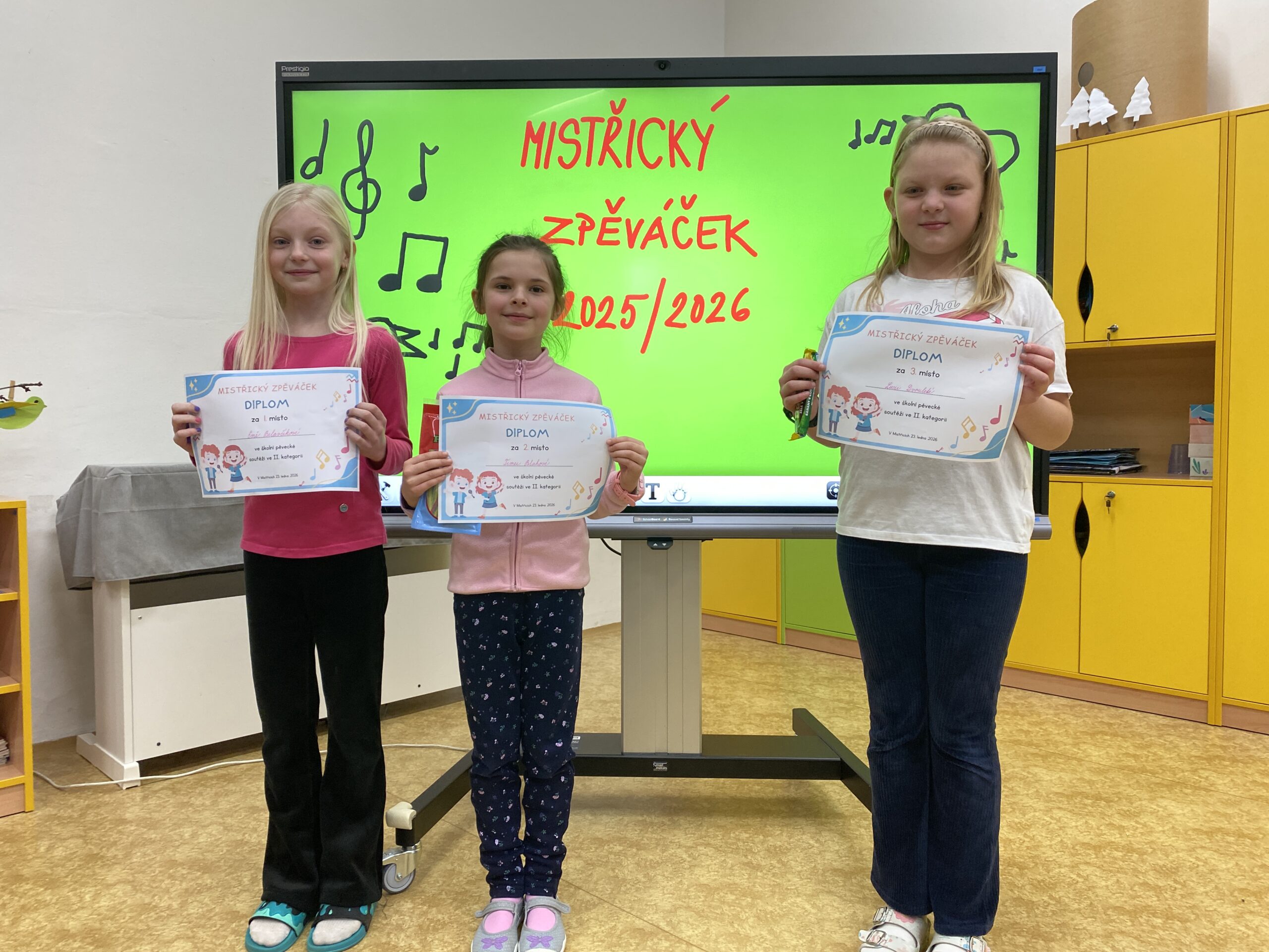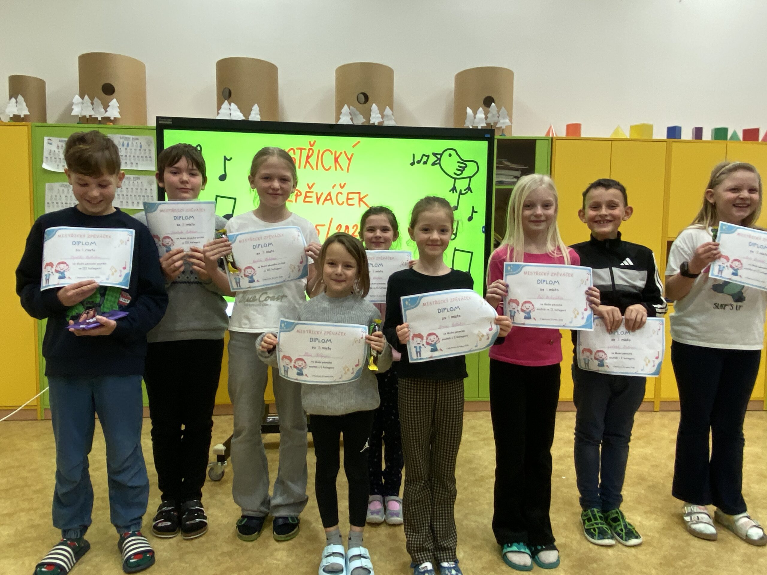Tento týden jsme zakončili školním kolem pěvecké soutěže a mohli se tak zaposlouchat do krásných melodií mistřických zpěváčků. Ne všichni žáci našli odvahu předvést svůj pěvecký talent ve třídním kole, o to více chválíme ty, kteří překonali trému a zazpívali. Soutěž probíhala ve třech kategoriích a porota to neměla vůbec jednoduché. Někteří zpěváčci si zvolili intonačně velmi náročné písně a jejich výkony byly na vysoké úrovni. Díky velké podpoře publika se každému podařilo svůj talent ukázat. Všem zpěváčkům děkujeme za odvahu a vítězům srdečně blahopřejeme!