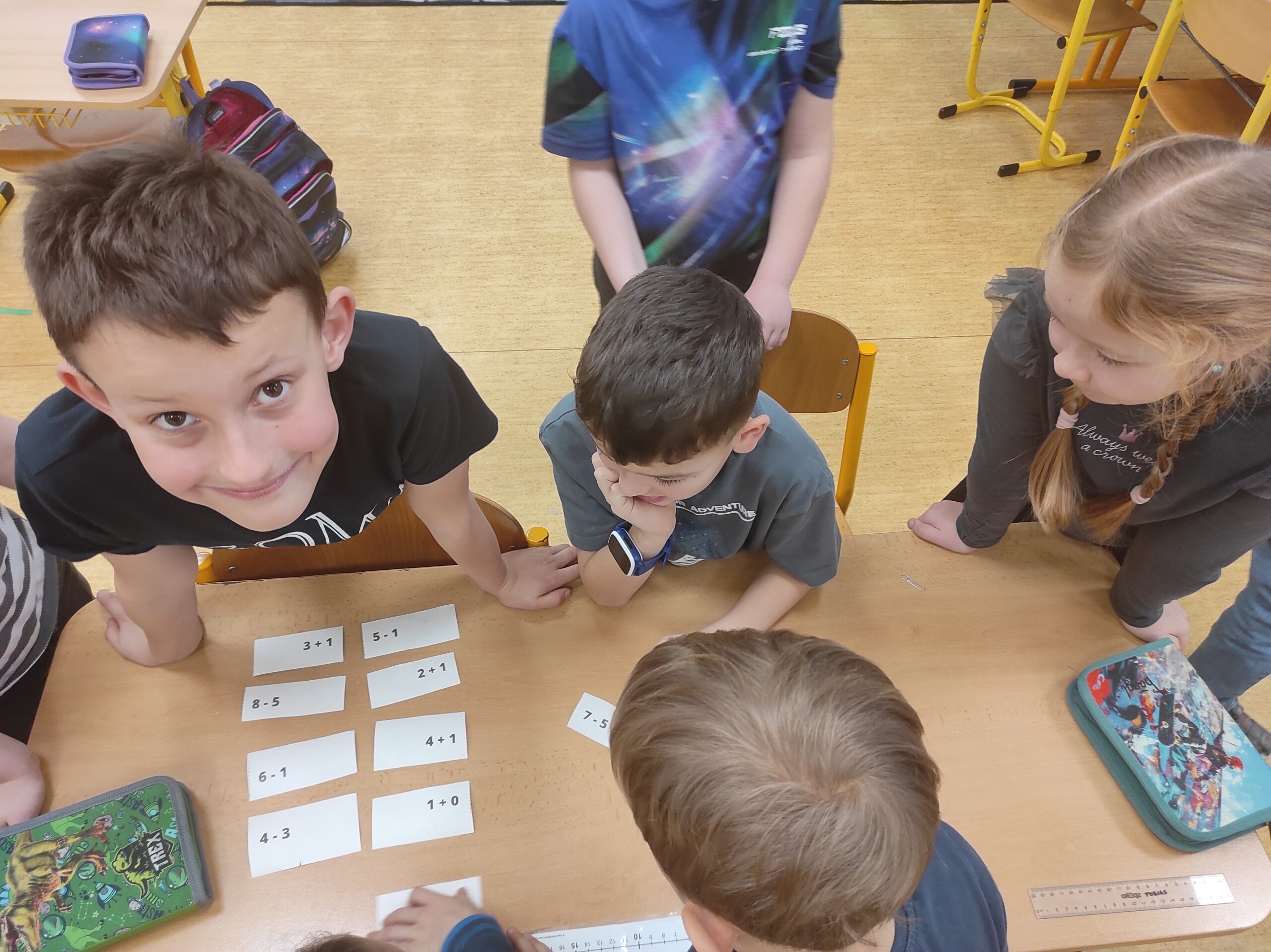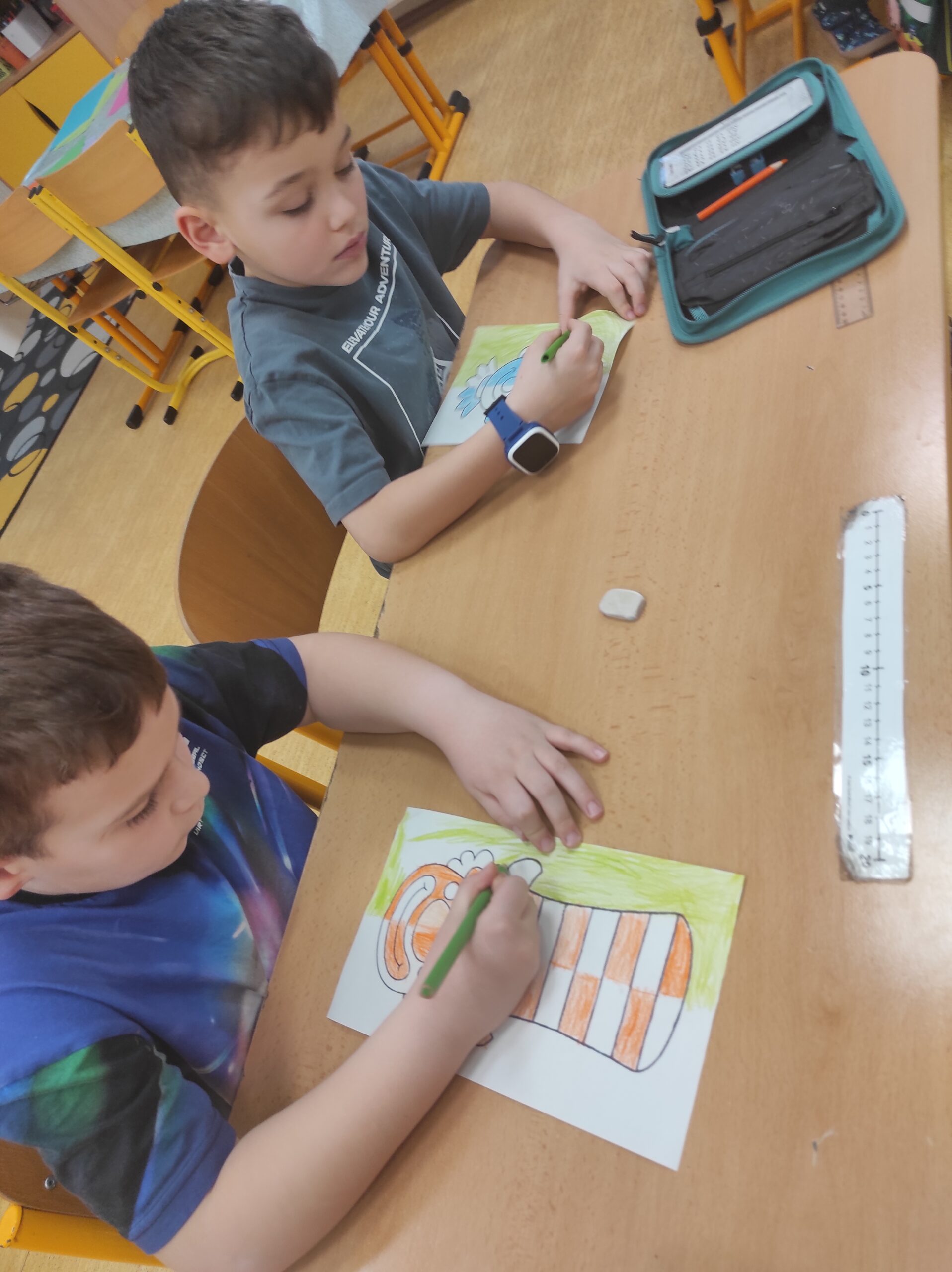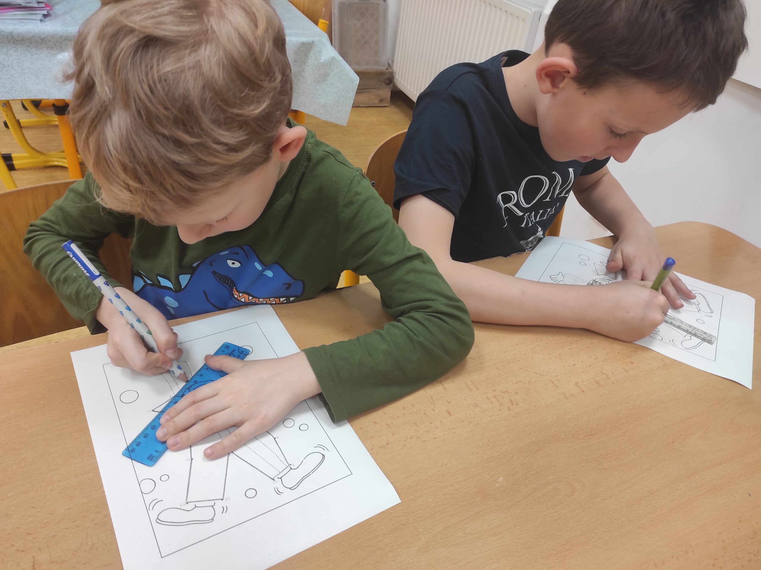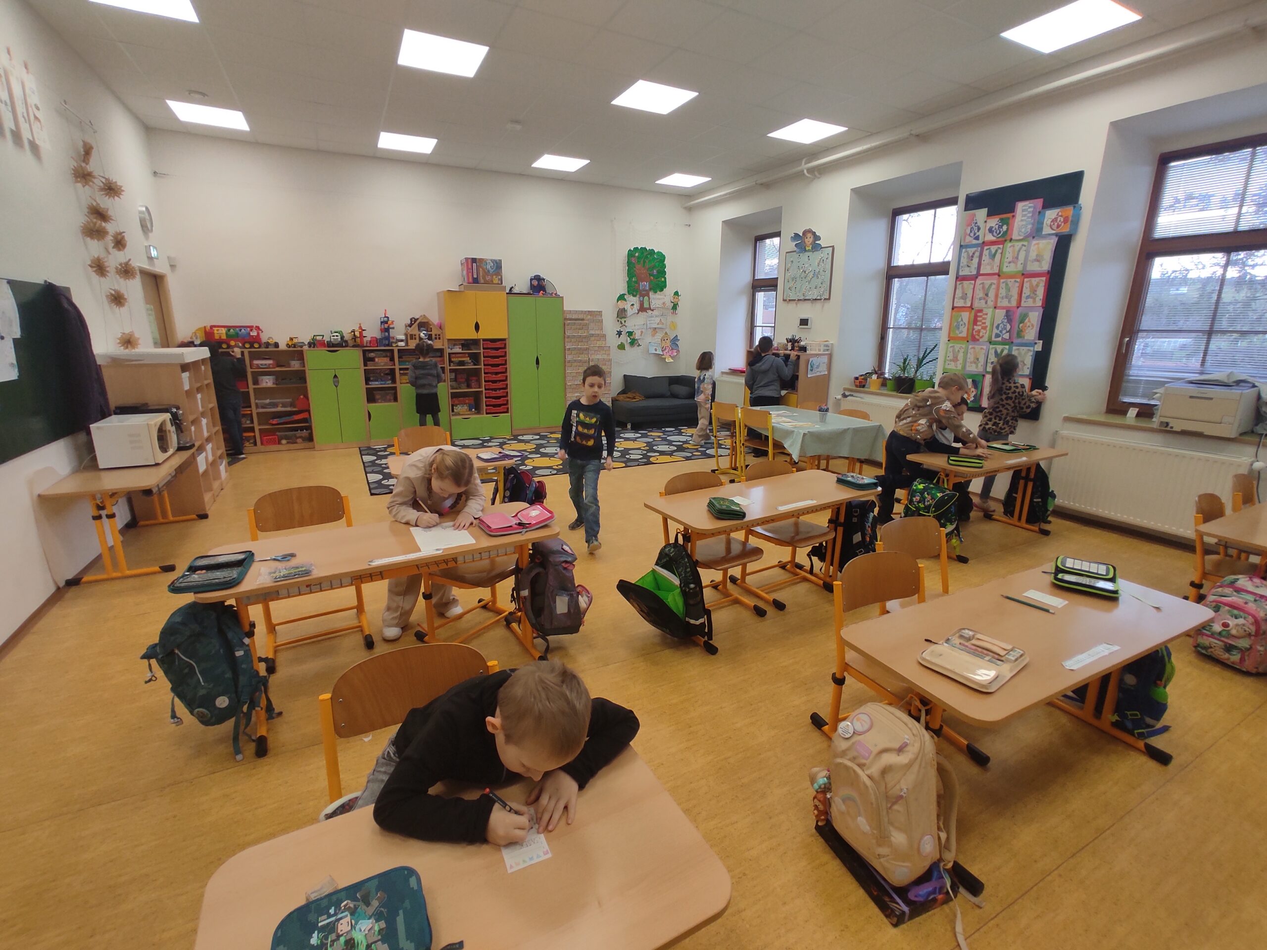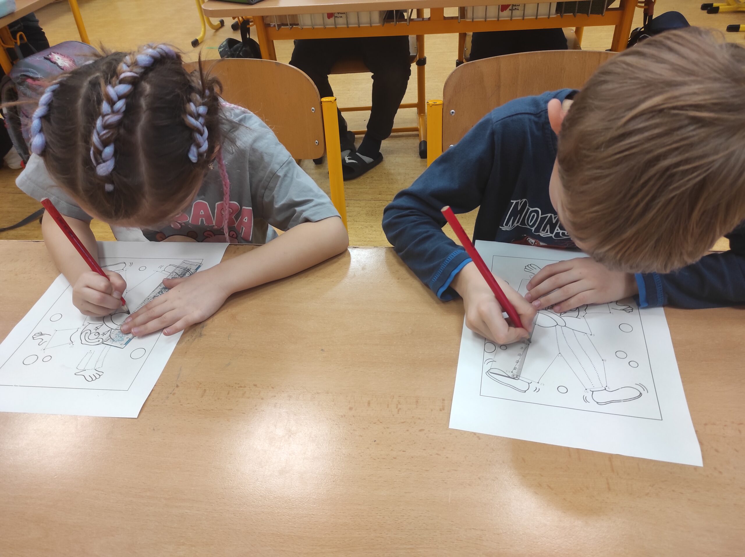 Ve třídě jsme si užili veselé fašankové chvíle plné učení i zábavy.  V matematice jsme si vyzkoušeli počítání s fašankovou tematikou a počítali příklady rozmístěné po třídě. Velký úspěch měl také běhací diktát s maskami, při kterém si žáci procvičili čtení, psaní i spolupráci. V geometrii zápasili s pravítky a snažili se co nejpřesněji spojit body, nacvičovali jsme rýsování úsečky. Zapeklitá byla výtvarka, kdy museli žáci logicky přemýšlet, aby masku vybarvili podle stanovených pravidel. Ne všichni pravidla dodrželi, ale výsledek byl nakonec hezký. Na závěr ještě hledali slova do fašankového textu. A vy víte, co jsou to ostatky – šibřinky – fašank – masopust?