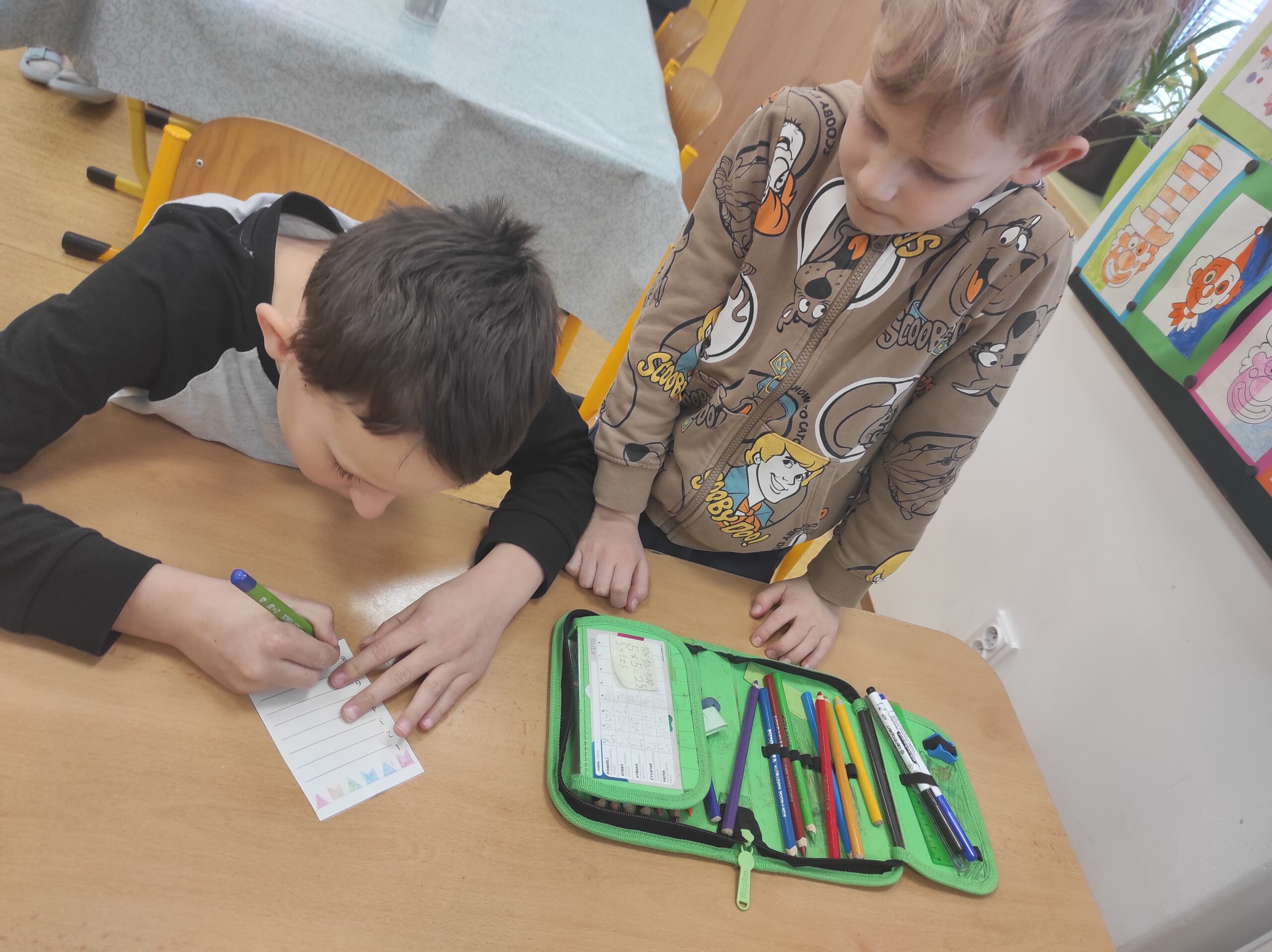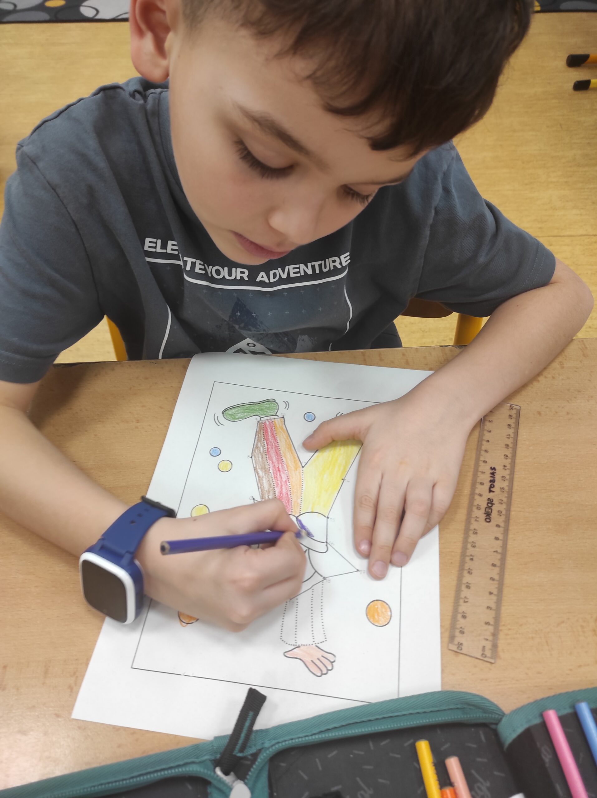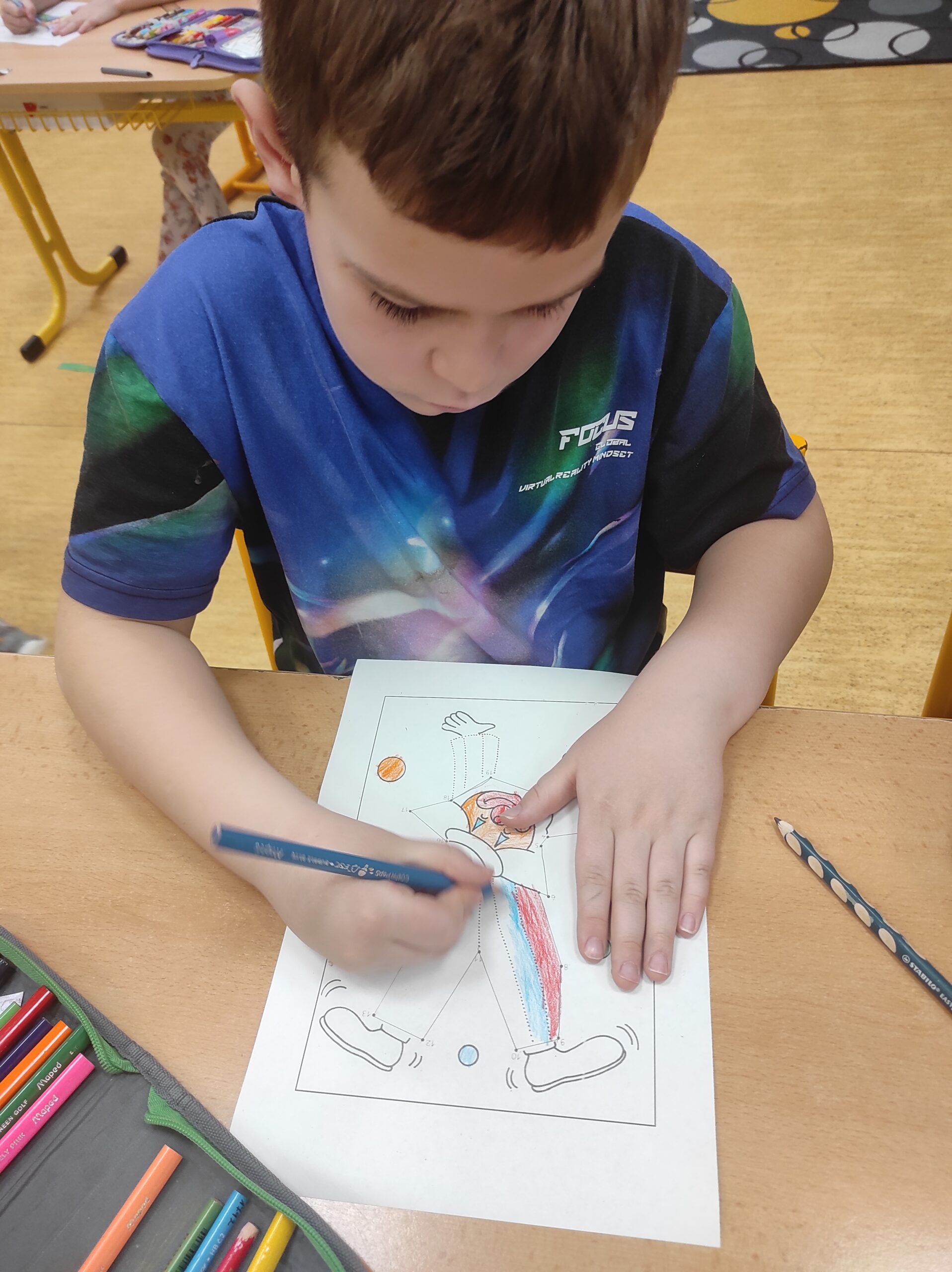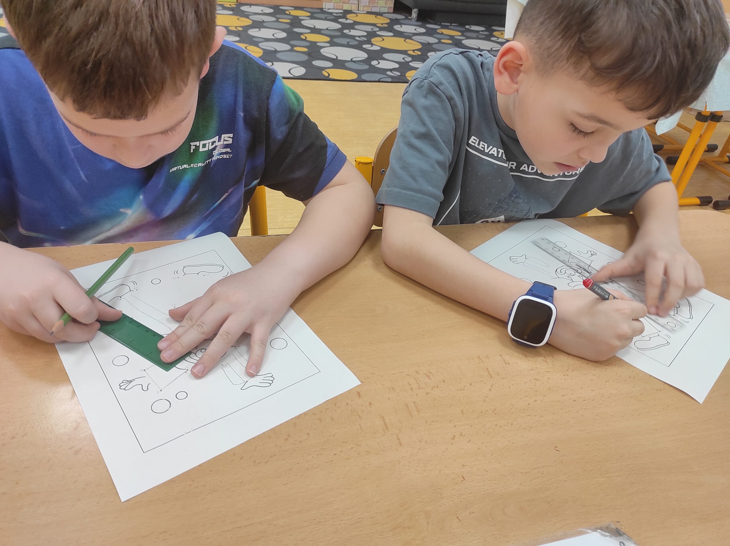 Ve třídě jsme si užili veselé fašankové chvíle plné učení i zábavy.  V matematice jsme si vyzkoušeli počítání s fašankovou tematikou a počítali příklady rozmístěné po třídě. Velký úspěch měl také běhací diktát s maskami, při kterém si žáci procvičili čtení, psaní i spolupráci. V geometrii zápasili s pravítky a snažili se co nejpřesněji spojit body, nacvičovali jsme rýsování úsečky. Zapeklitá byla výtvarka, kdy museli žáci logicky přemýšlet, aby masku vybarvili podle stanovených pravidel. Ne všichni pravidla dodrželi, ale výsledek byl nakonec hezký. Na závěr ještě hledali slova do fašankového textu. A vy víte, co jsou to ostatky – šibřinky – fašank – masopust?