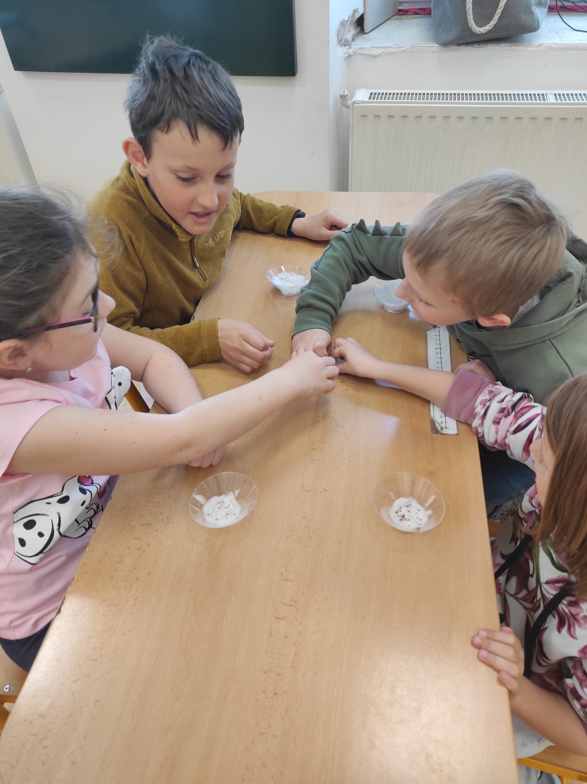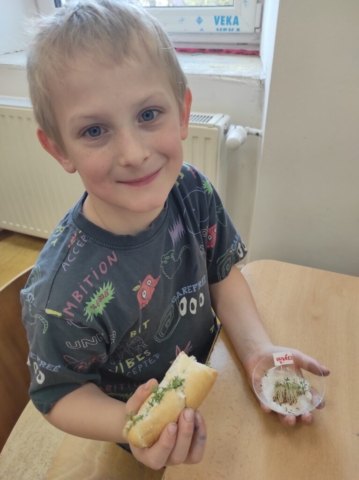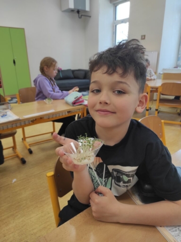 Na začátku jsme si povídali o jarním počasí. Pozorovali změny v přírodě, sledovali, jak se střídá sluníčko s deštěm, a učili se pojmenovávat typické znaky jara. Velkou pozornost jsme věnovali také rostlinám. Povídali jsme si o tom, jak rostou, co potřebují k životu, a některé jsme si dokonce sami vypěstovali. Žáci si sázeli řeřichu, o kterou se sami starali. Největší radost pak měly z její ochutnávky – mnohé překvapila svou výraznou chutí. Nezapomněli jsme ani na ptáky, kteří se na jaře vracejí z teplých krajin. Učili jsme se je poznávat a povídali si o tom, jak jim můžeme pomáhat. Vyzkoušeli jsme si také nové metody učení, jako je pětilístek, Vennův diagram nebo tvorba vlastního komiksu. Tyto aktivity pomohly dětem lépe přemýšlet o probíraných tématech, rozvíjet kreativitu i schopnost vyjadřovat své myšlenky. V matematice jsme rozvíjeli digitální dovednosti. V hodinách čtení jsme se věnovali bajkám, které dětem přiblížily ponaučení o lidských vlastnostech. Postupně jsme také rozvíjeli samostatné čtení.