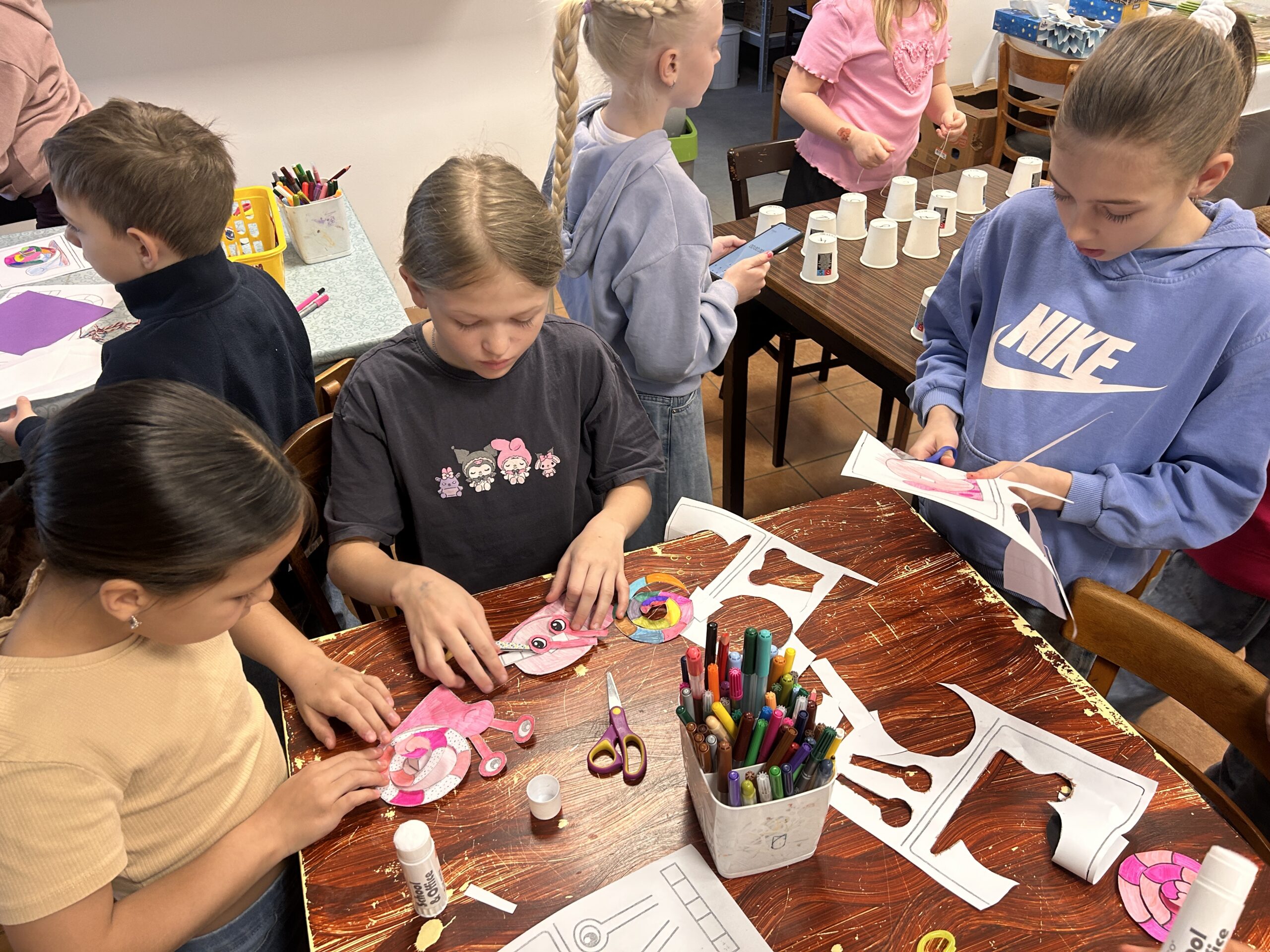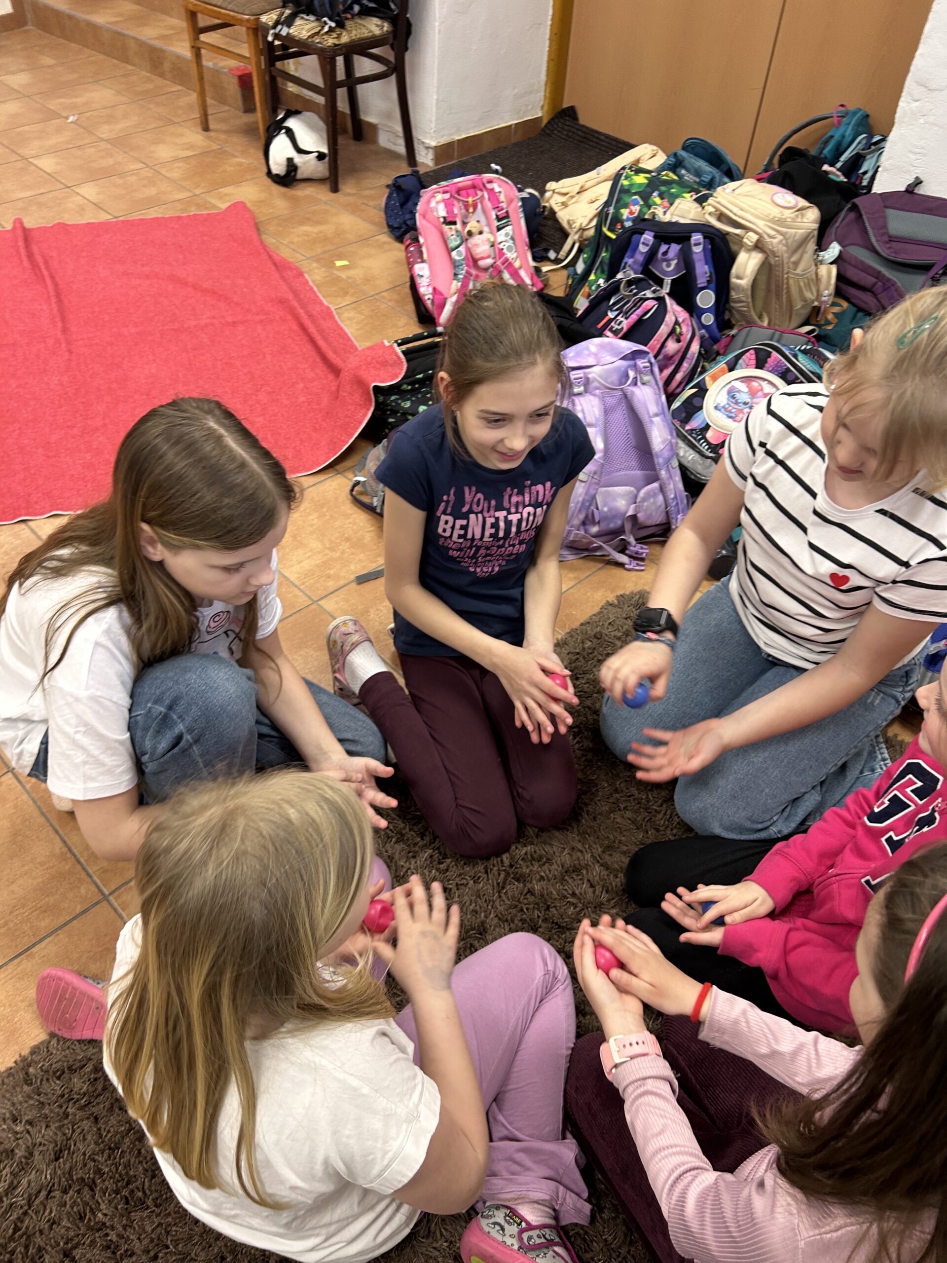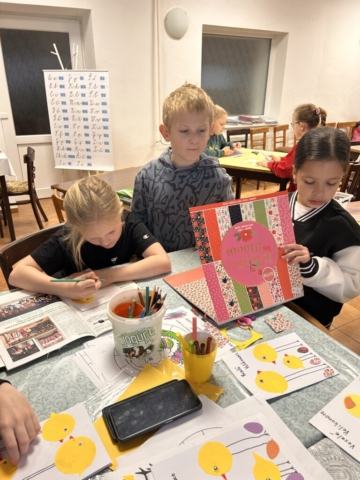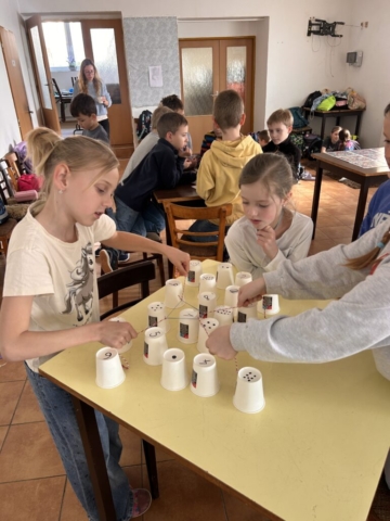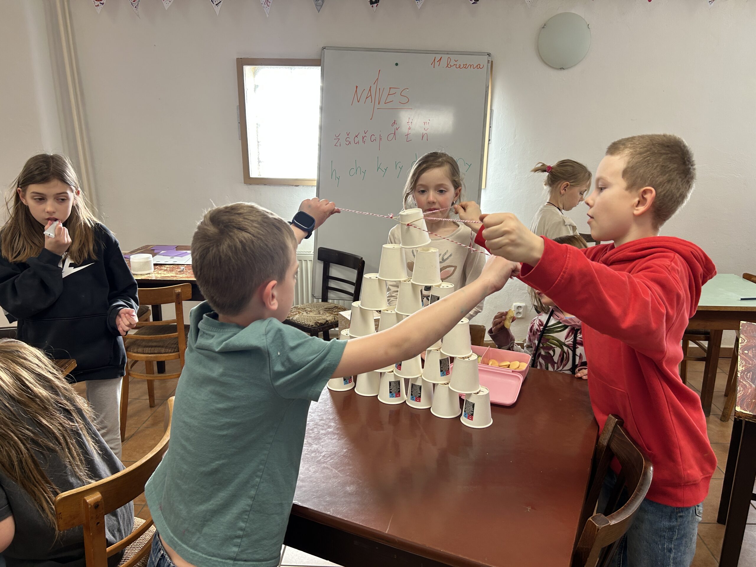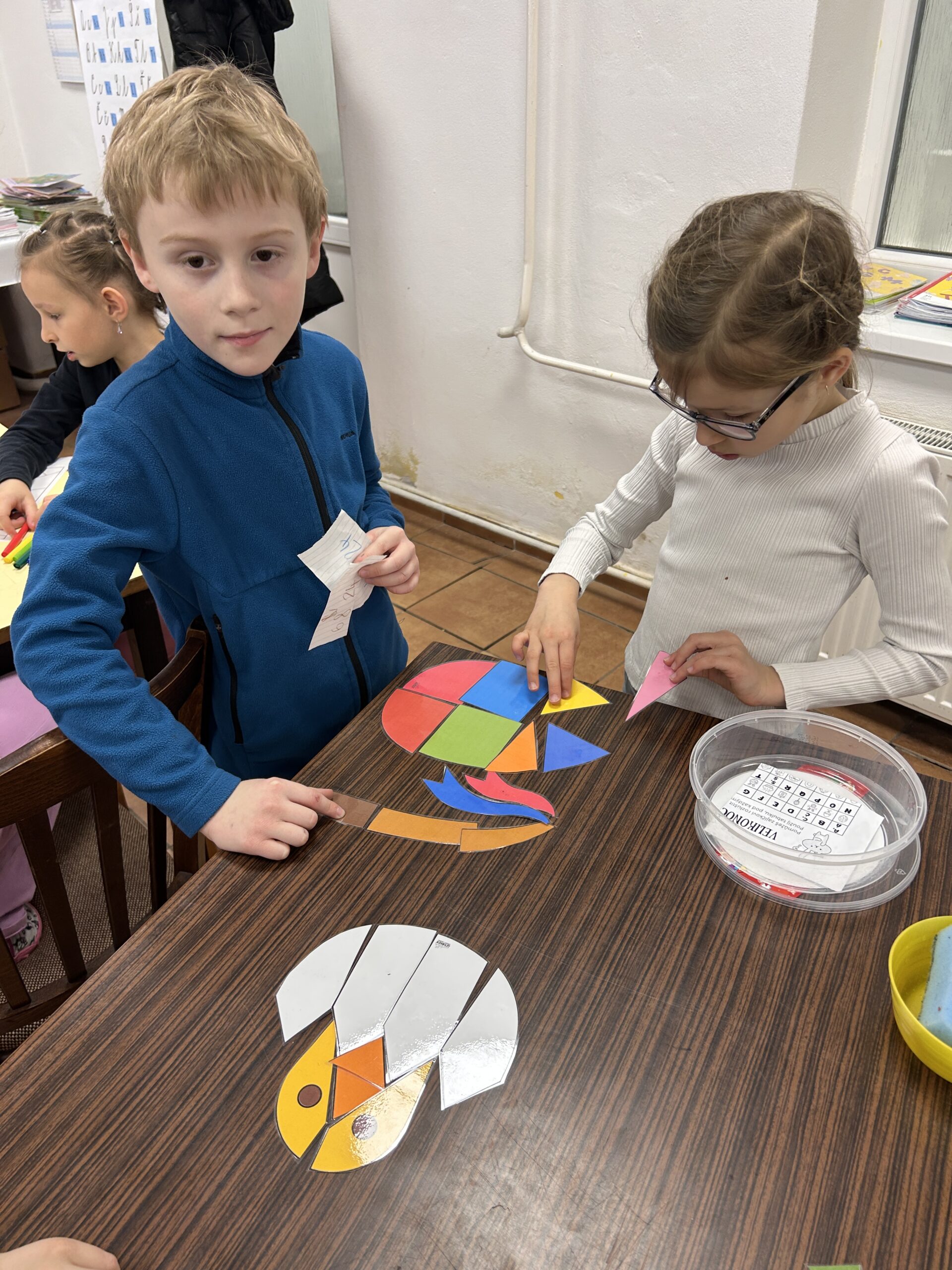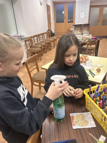 Děti se zapojily do velikonočního šifrování, luštění křížovek a osmisměrek, při kterých si přirozenou formou procvičovaly pozornost i analytické uvažování. Součástí programu bylo také třídění barevných vajíček na čas, jarní omalovánky, zdobení kraslic a další velikonoční výtvarné tvoření.
