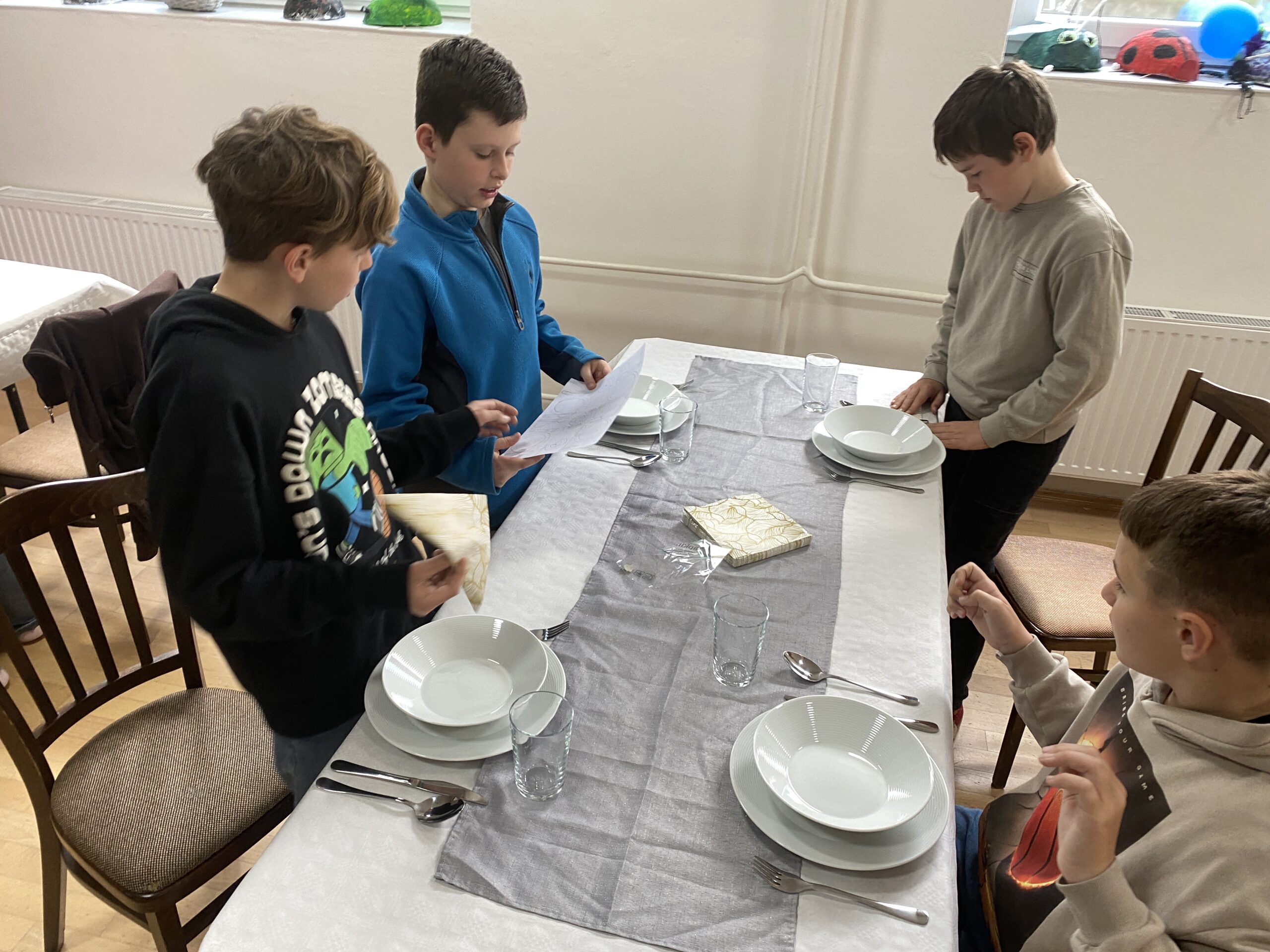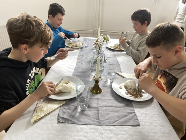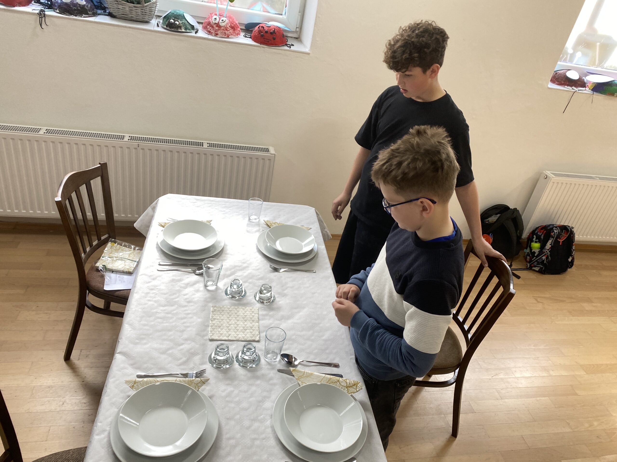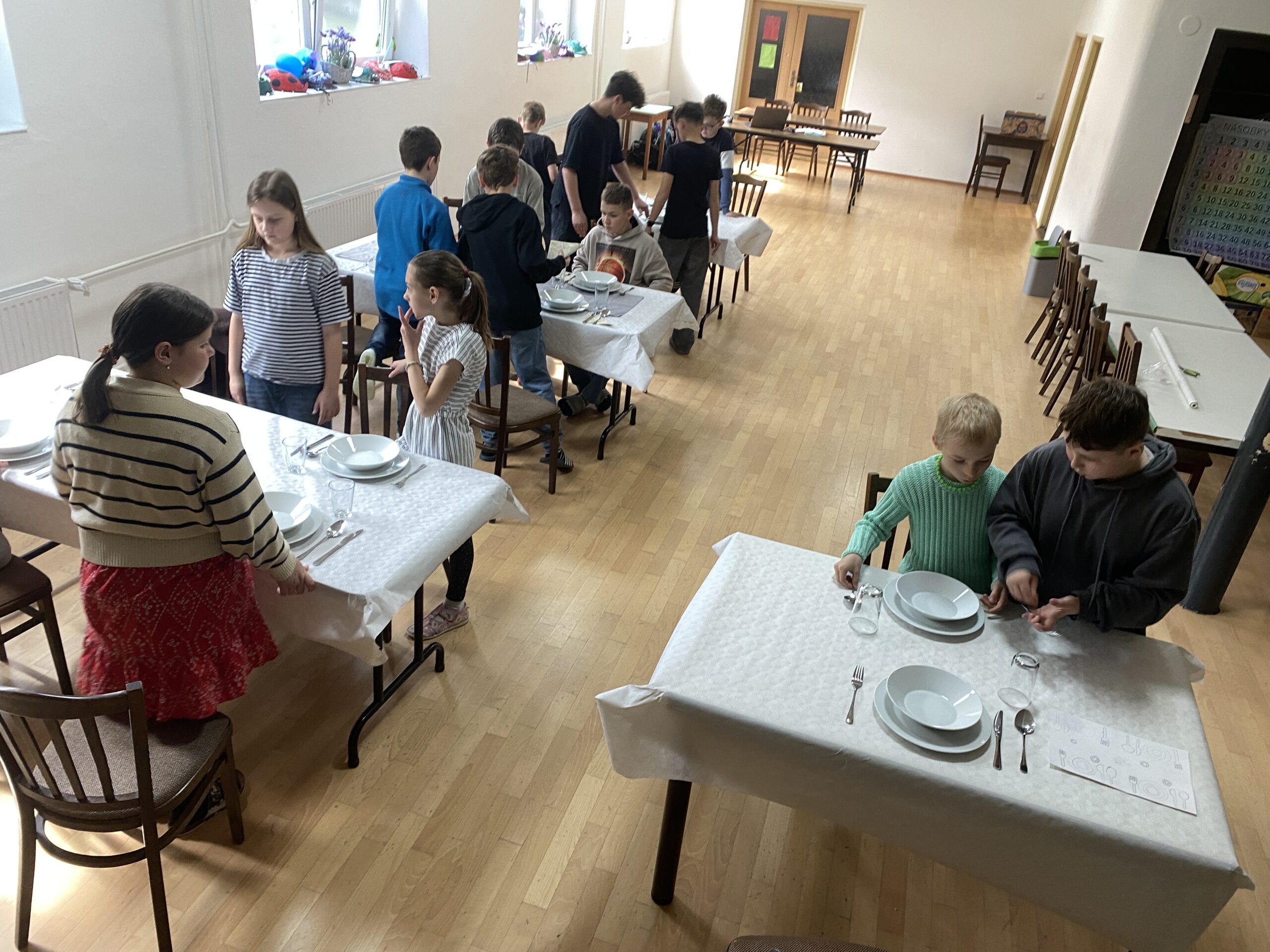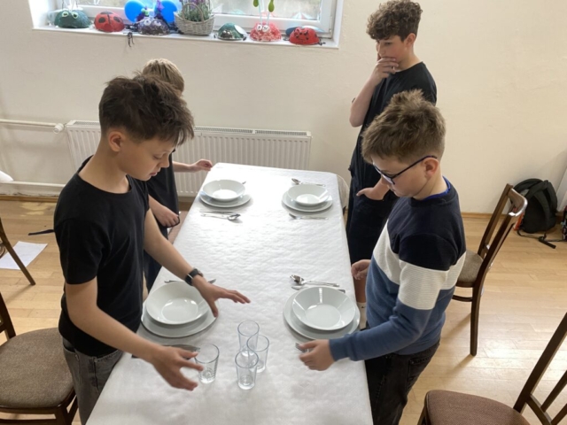 Pravidla společenského chování u stolu, přípravu slavnostní tabule, ale také následný úklid stolu a nádobí – to všechno si vyzkoušeli čtvrťáci a páťáci v rámci našeho projektu věnovanému pravidlům – tento týden se jednalo o pravidla stolování, chování v restauraci, chování k obsluze, přípravě stolu, správnému objednání jídla, úklidu stolu, vzájemné spolupráci, ….