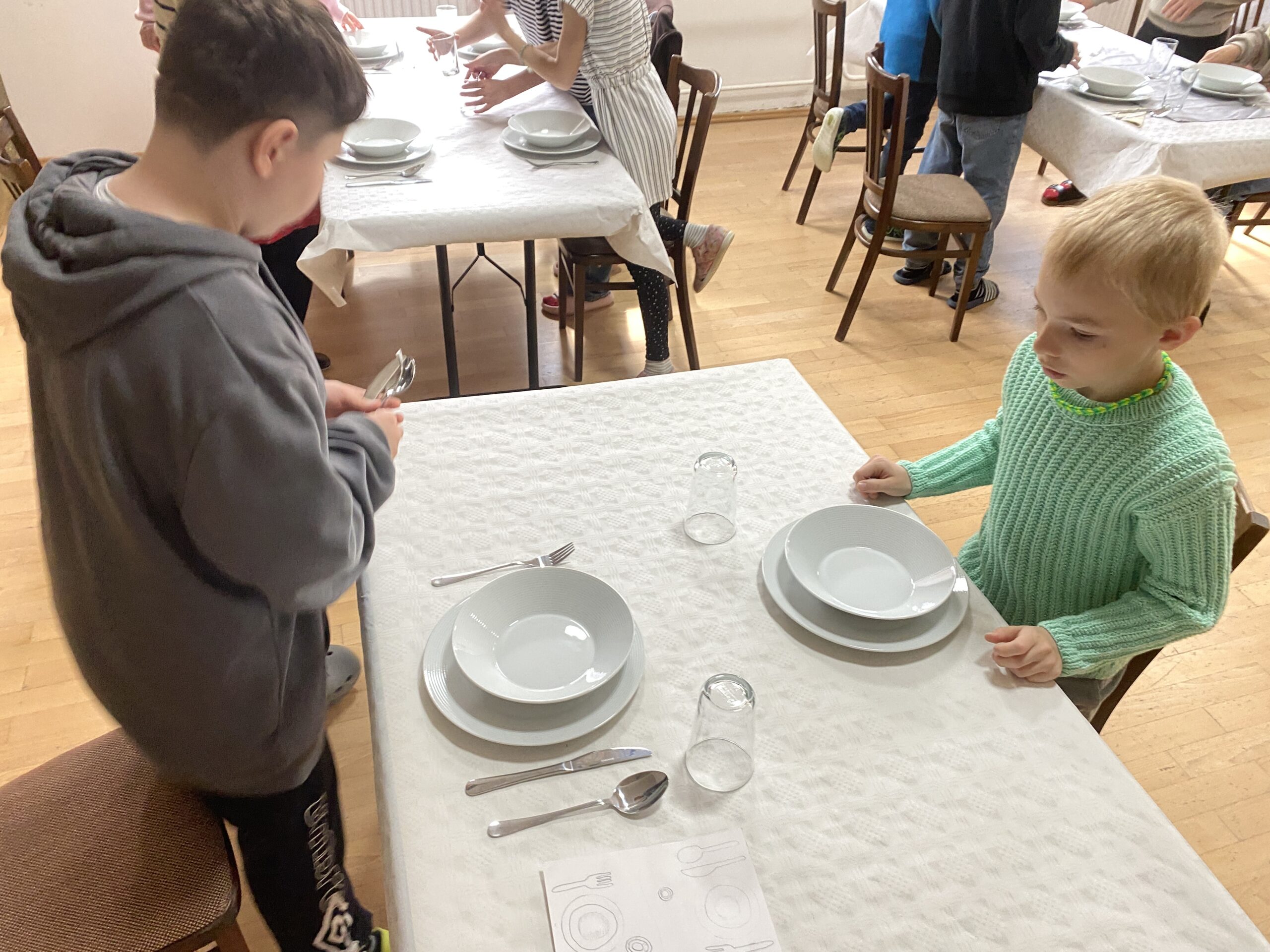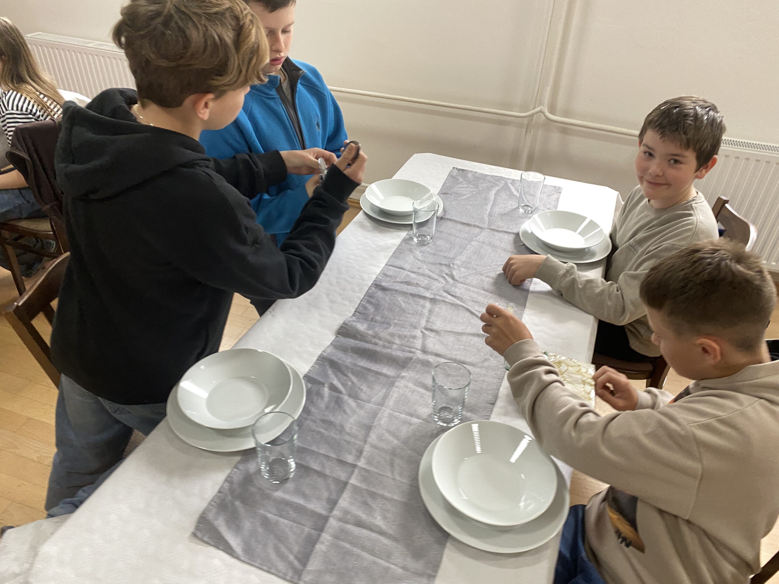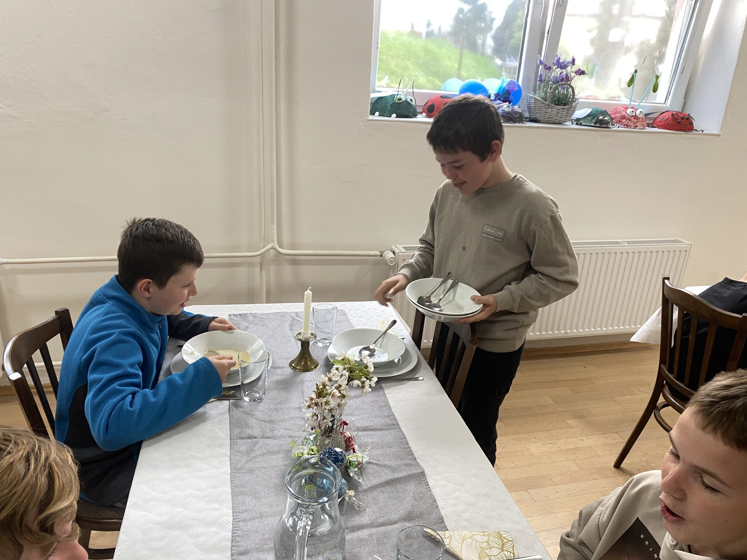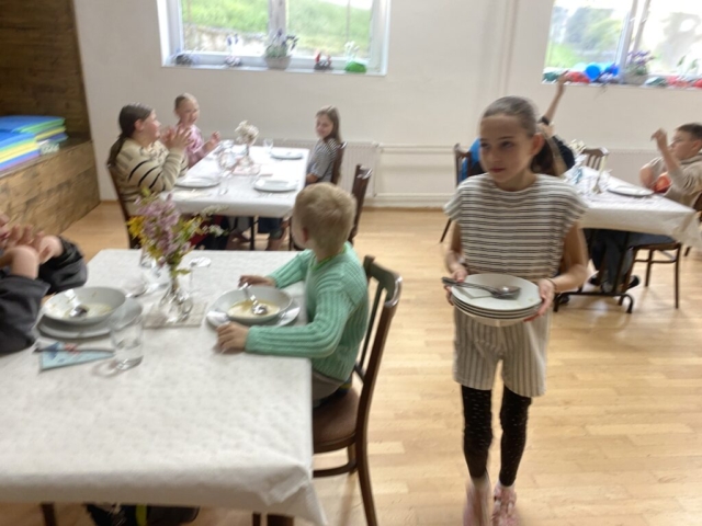 Pravidla společenského chování u stolu, přípravu slavnostní tabule, ale také následný úklid stolu a nádobí – to všechno si vyzkoušeli čtvrťáci a páťáci v rámci našeho projektu věnovanému pravidlům – tento týden se jednalo o pravidla stolování, chování v restauraci, chování k obsluze, přípravě stolu, správnému objednání jídla, úklidu stolu, vzájemné spolupráci, ….